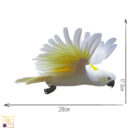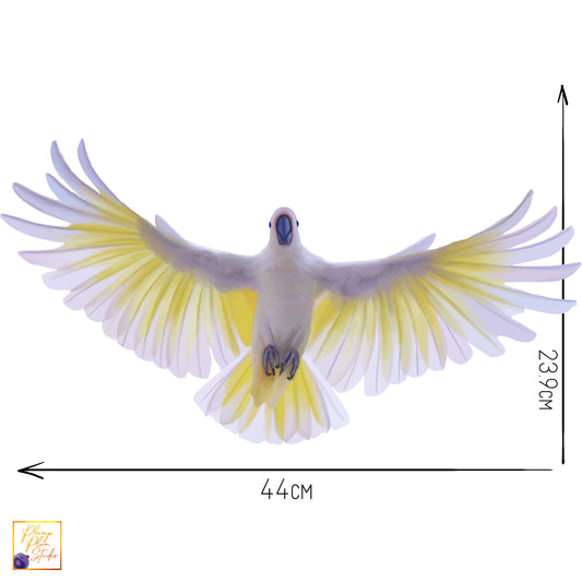 Cockatoo decal, flying cockatoo, Australian themed decor, Yellow crested cockatoo, peel/stick, repositionable vinyl wall decal, car decal