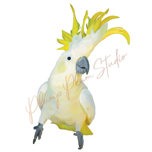 Cockatoo decal, Sulfur crested cockatoo sticker, fabric texture vinyl indoor/outdoor decal, removable, repositionable luxury textured vinyl