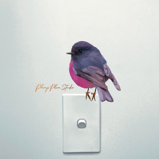 Pink Robin decal, pink robin vinyl sticker, peel/stick, light switch decal, car vinyl bird decal, fabric textured wall decal, repositionable