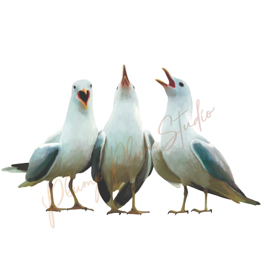 Realistic Seagulls trio decal, Bird lover gift, repositionable luxury textured vinyl, ocean bird sticker, light switch decal, car decal