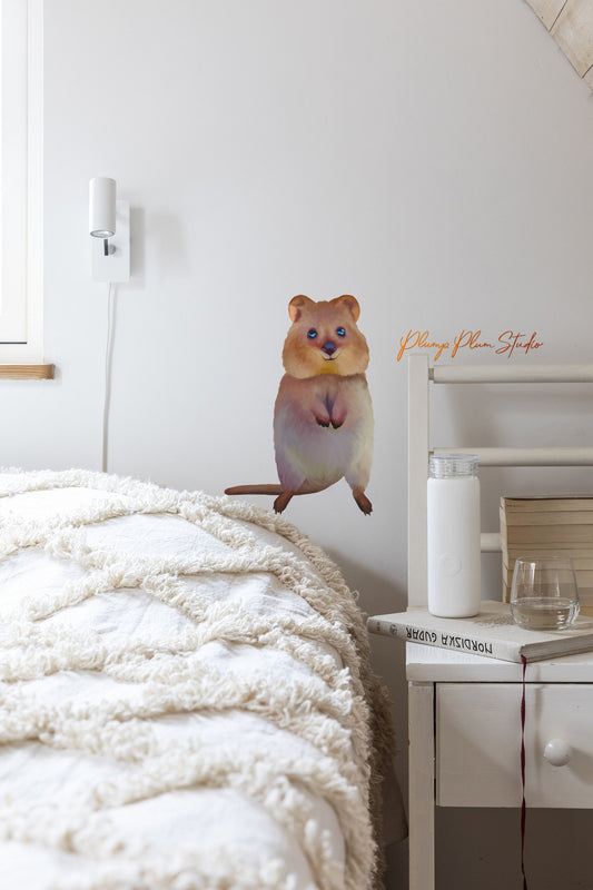 Quokka decal, Australian animal sticker, Smiling Quokka art print, Australian animal, repositionable fabric texture vinyl indoor/outdoor