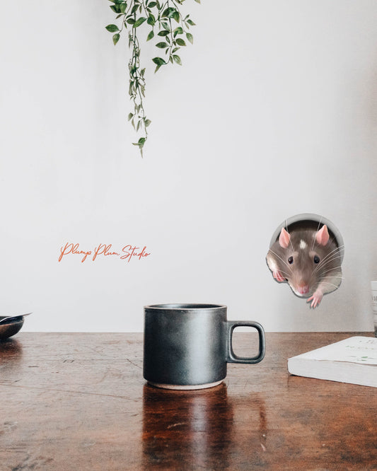 Realistic rat decal, rat hole, illustrated rat decal, rat wall sticker, cute rat house, crazy cat lady gift, car decal, textured vinyl