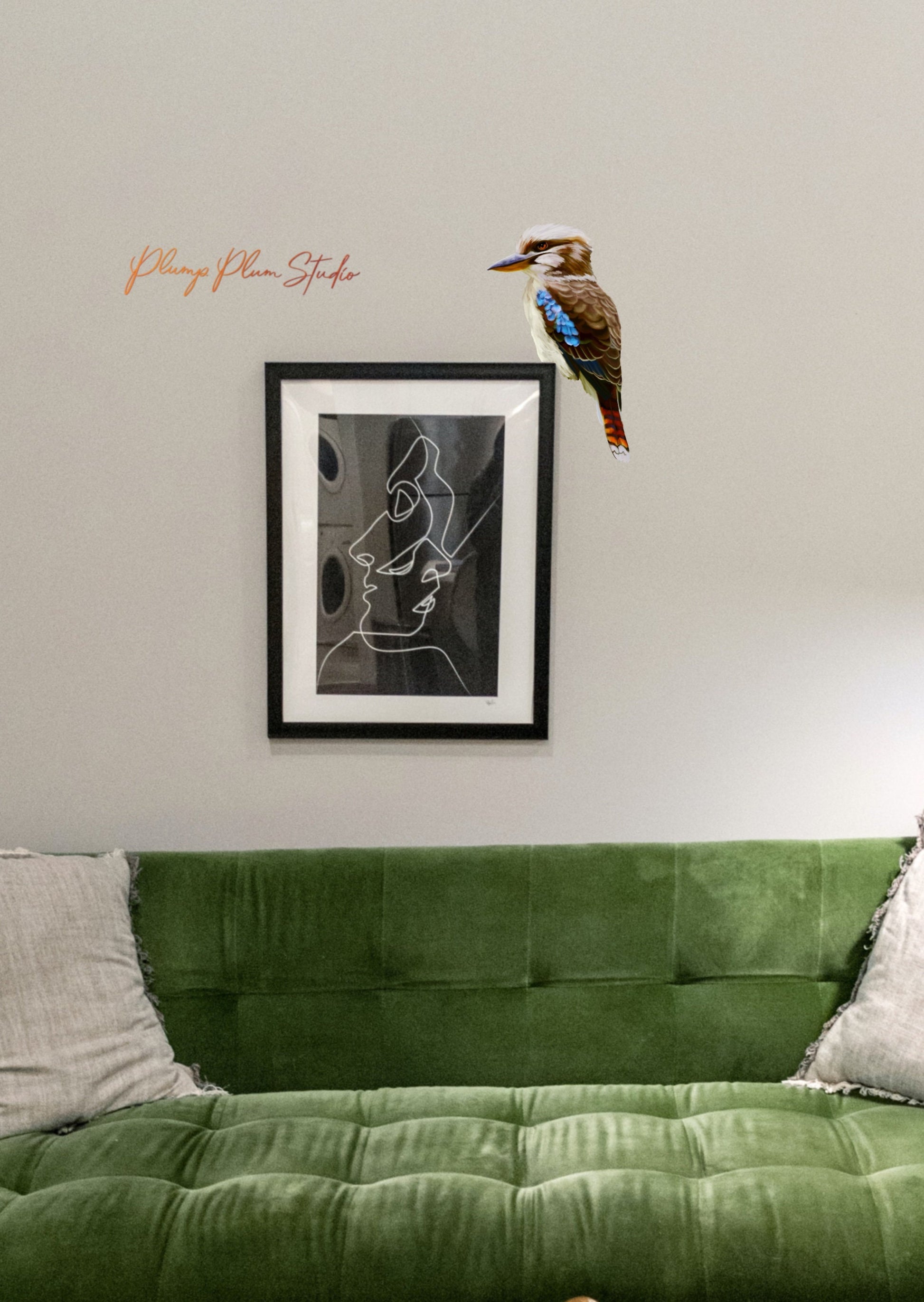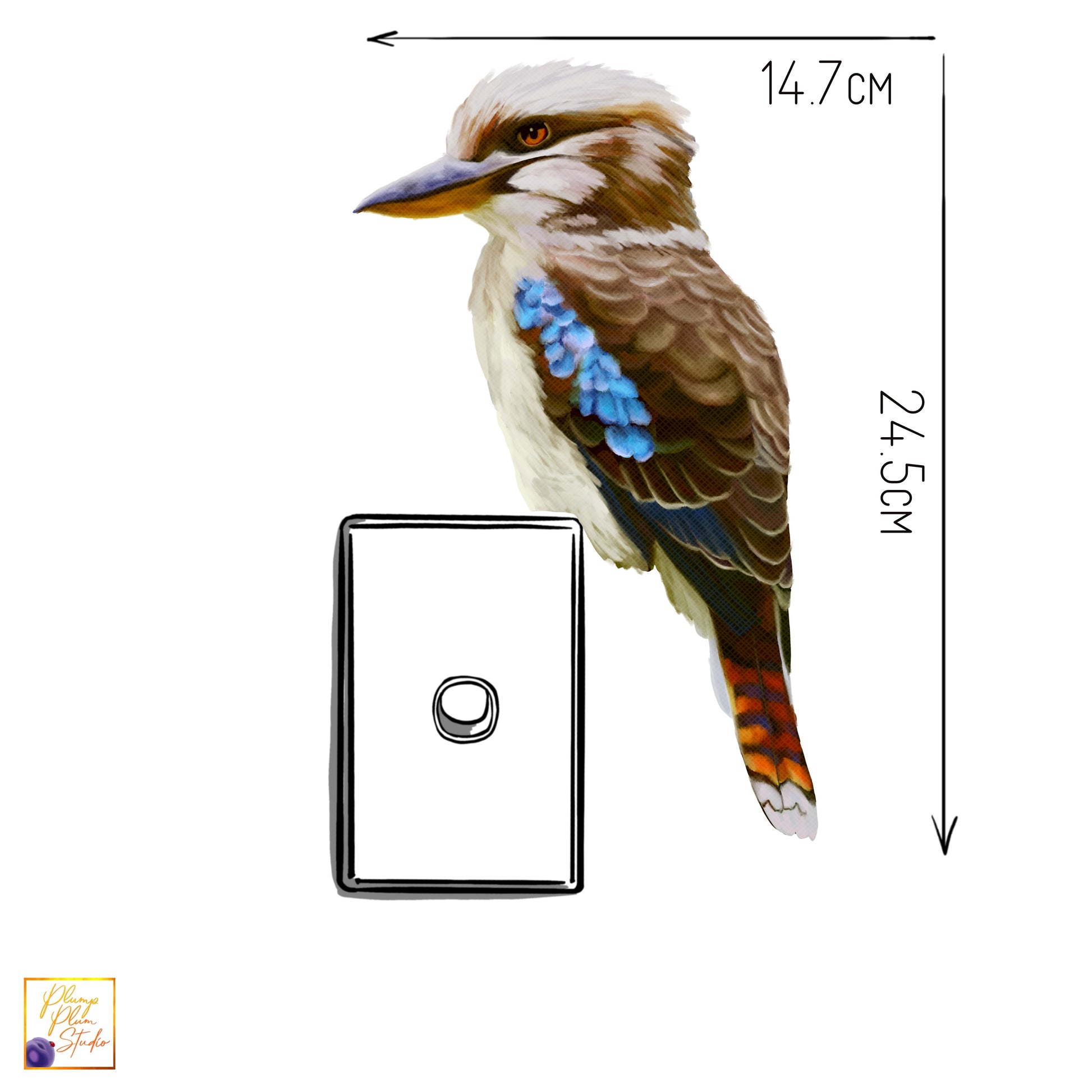 Beautiful perched Kookaburra, one of Australia’s most iconic birds. Their laughing call is well known to all Australians, they characterful and vibrant backyard visitors throughout Australia. He’ll look fantastic perched on the back of your car, or above your door, or on a window, anywhere in and out of the house.