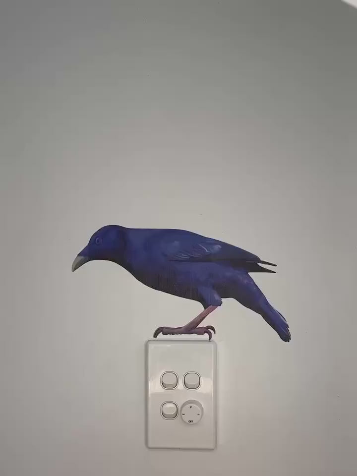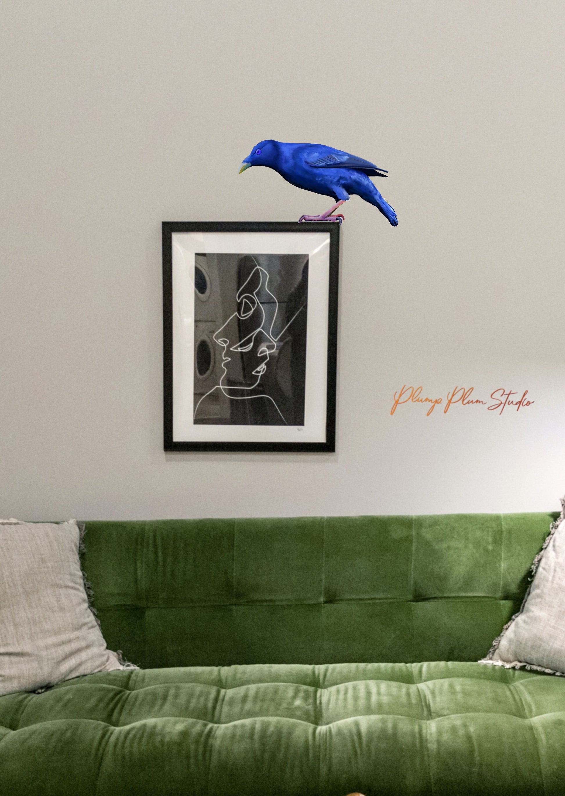 A male Satin Bowerbird can be quite the blue spectacle in the Australian bush. Blue obsessed, the male satin bowerbird will collect (steal?) anything blue and scatter it around its nest to attract a female, they are one of Australia’s most quirky birds. He’ll look fantastic perched above your door, or on the side of your car, anywhere in or out of the house.