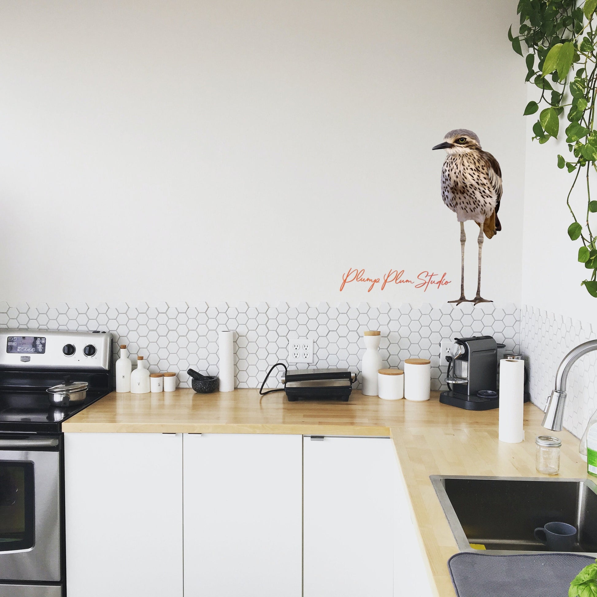 The Australian Stone Curlew, a beautiful statuesque bird. This decal will be a special talking point in any room in the house, be it the nursery, lounge room, or hallway. Great for sticking on top of light switches or power points, or even positioned above doors and cupboards or along your baseboard/skirting boards.