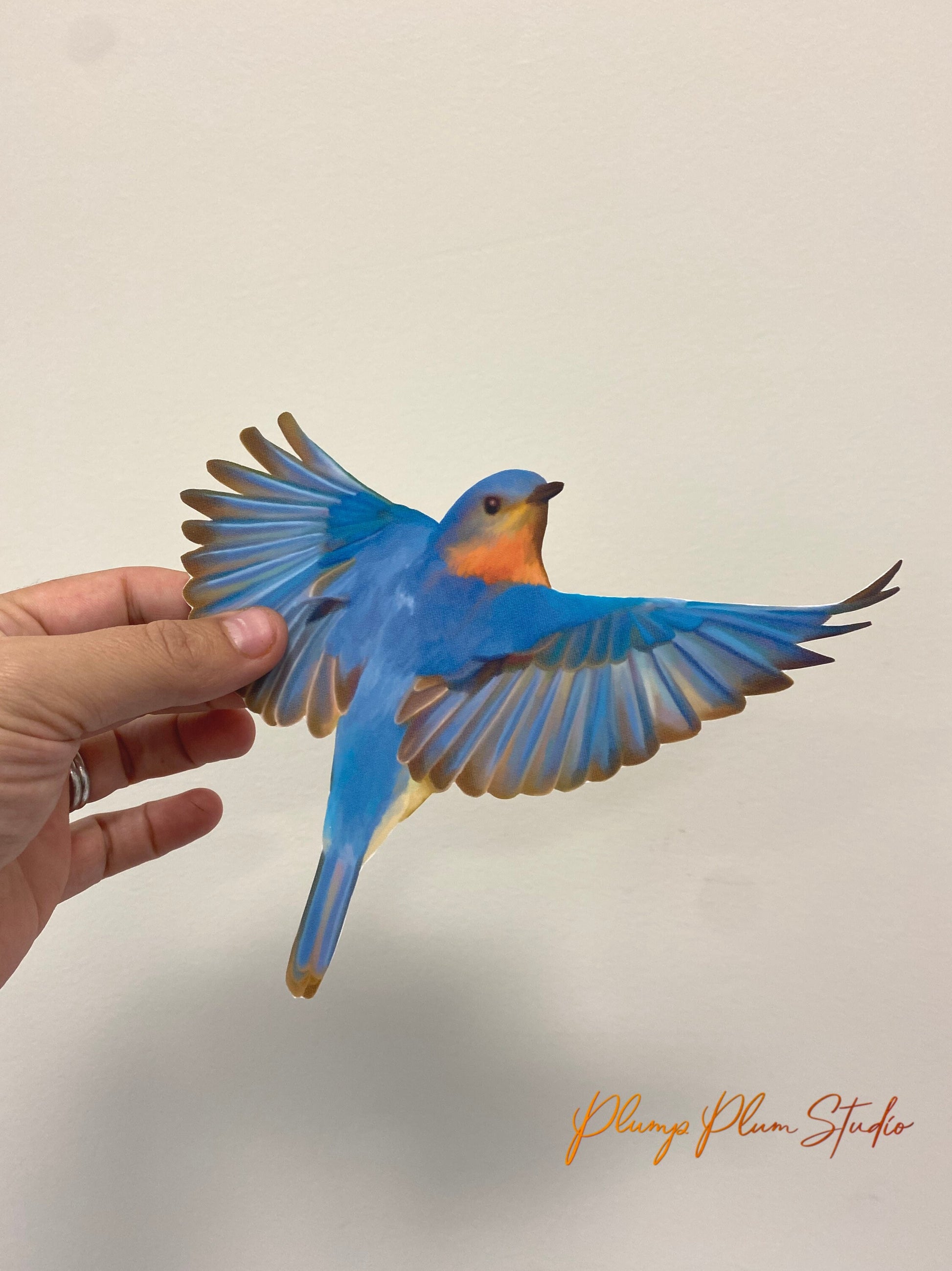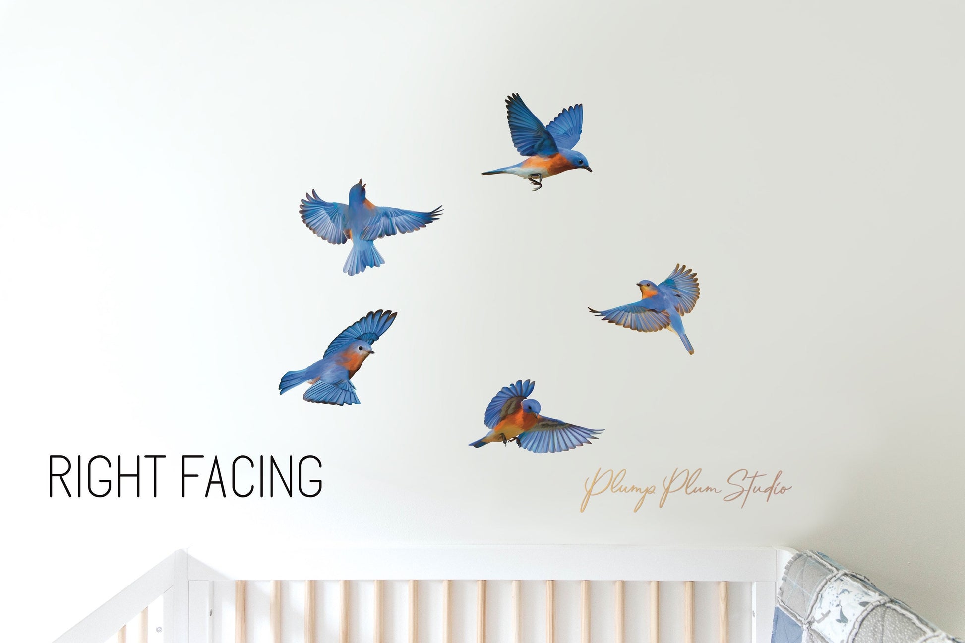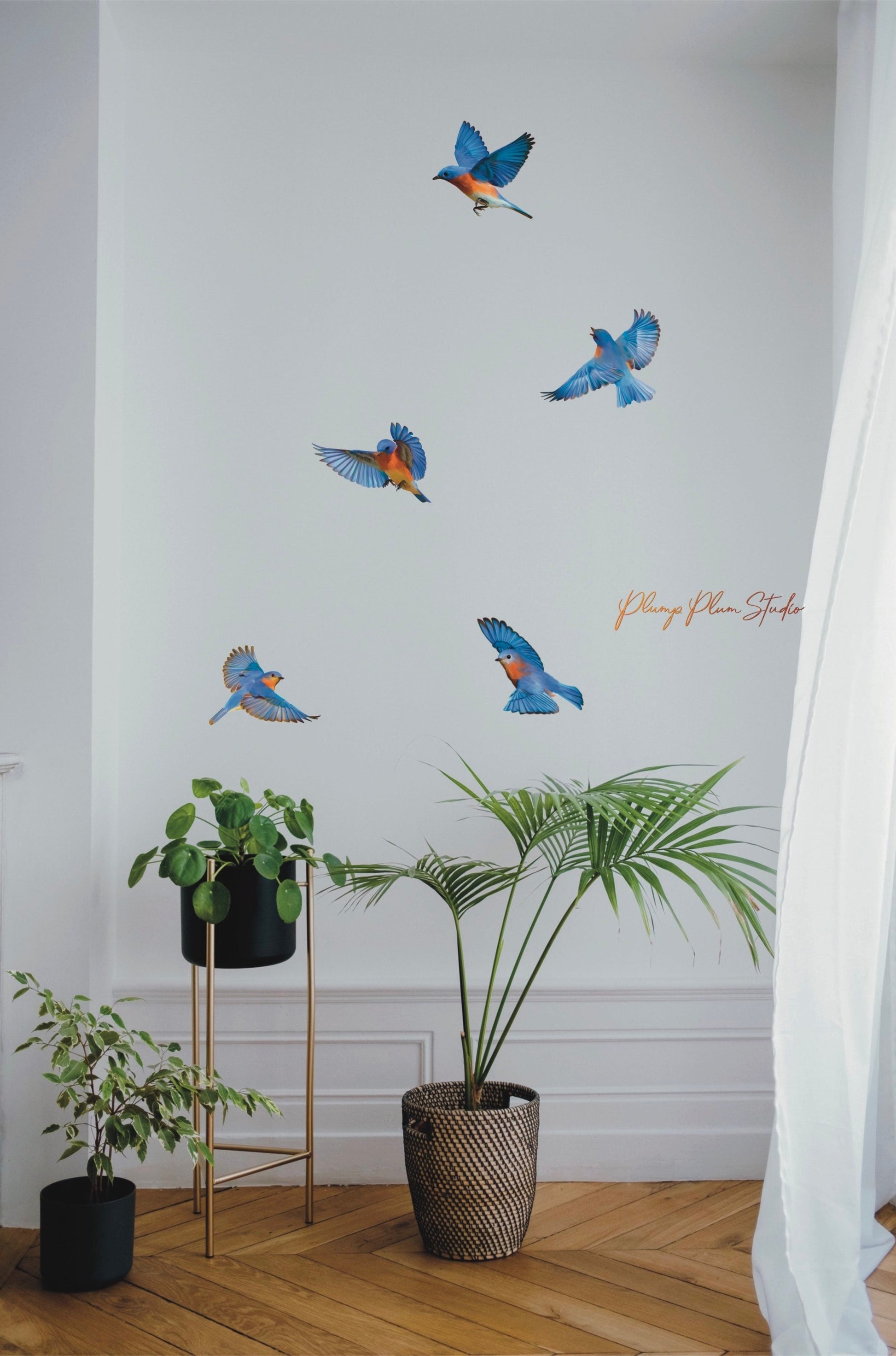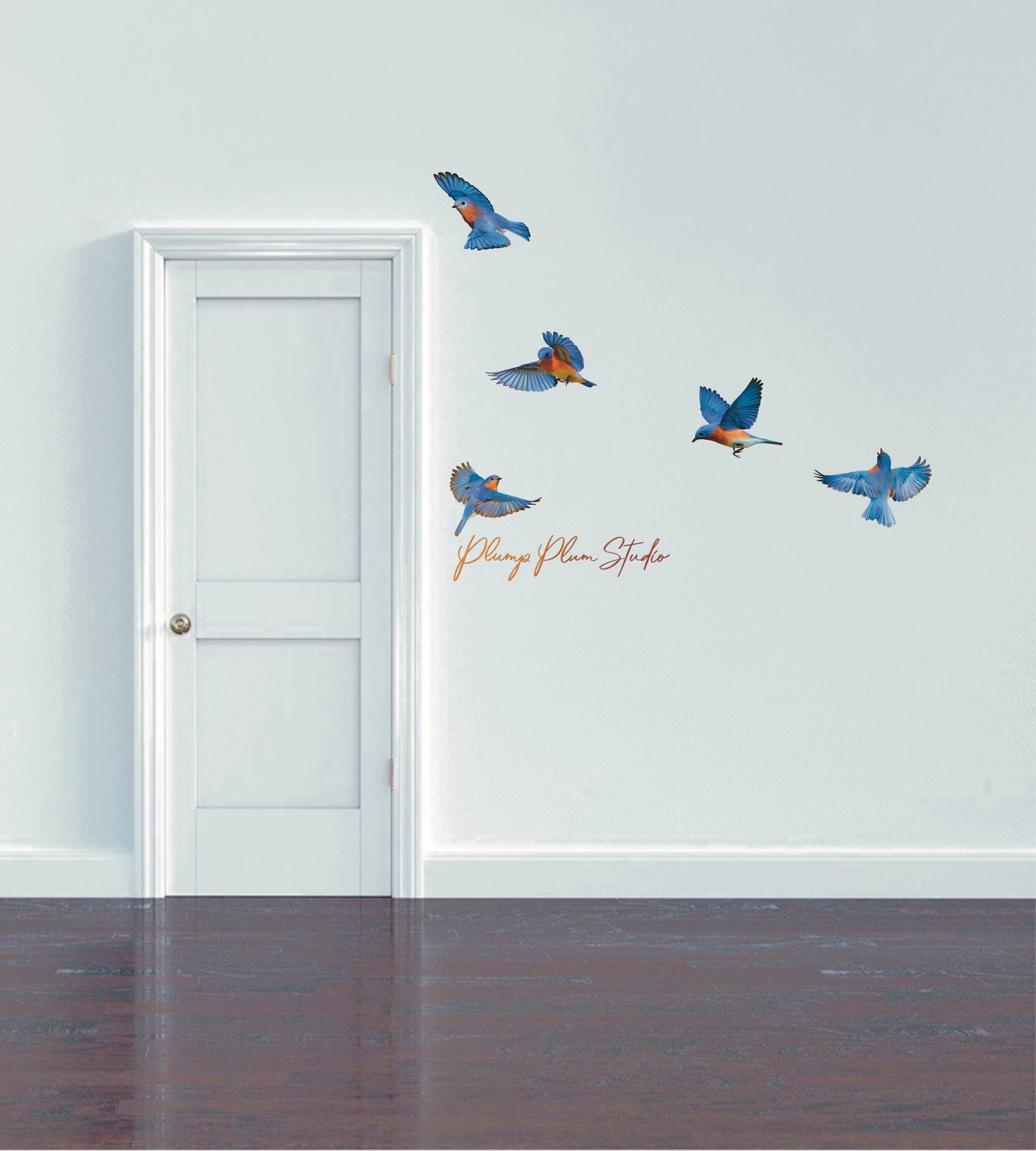 Set of Blue bird decals (bundle of 5), realistic blue bird wall stickers, indoor/outdoor repositionable luxury textured vinyl, car decals