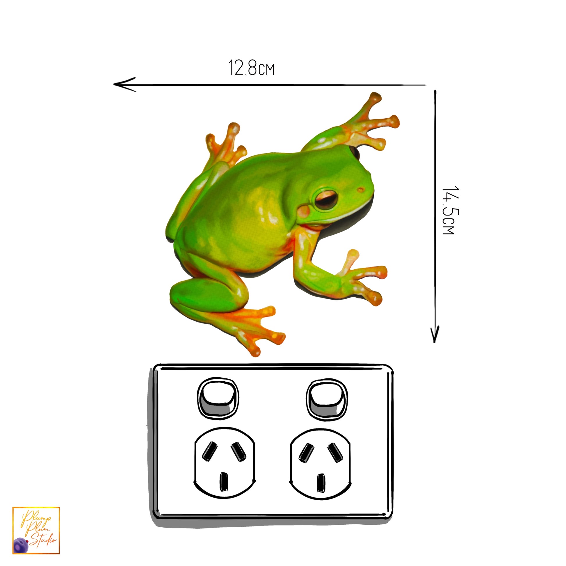 One very cute Australian Green Tree Frog. One of the many cute amphibians found in Australia. You can position inside and out. Put him above a light switch, or on your car, place him on a window, or in a sneaky corner, your imagination is the limit!
