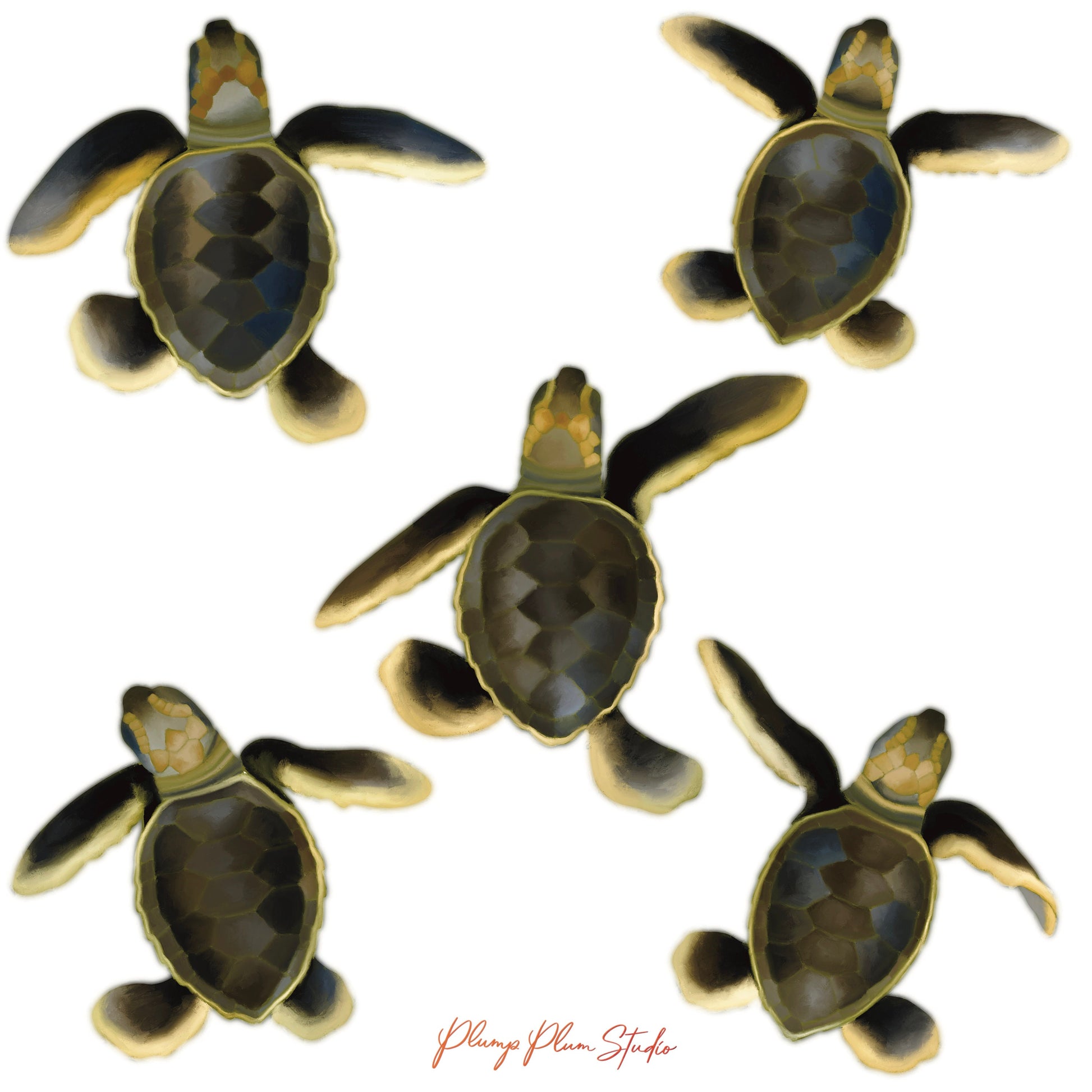 Set of 5 Sea turtles