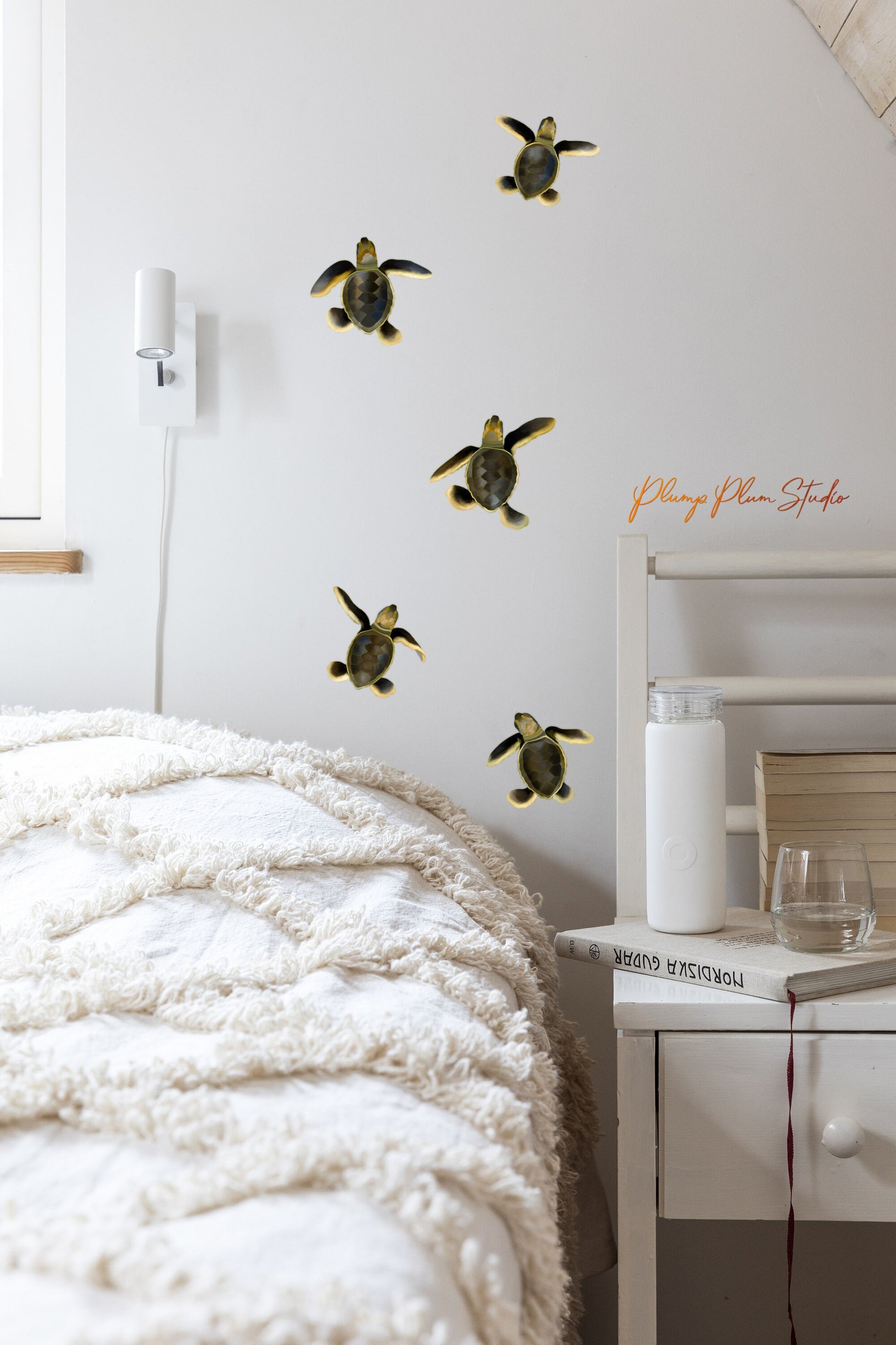 Baby sea turtle decals (bundle of 5), realistic sea turtle stickers, indoor/outdoor textured luxury vinyl decal, car decals or wall sticker