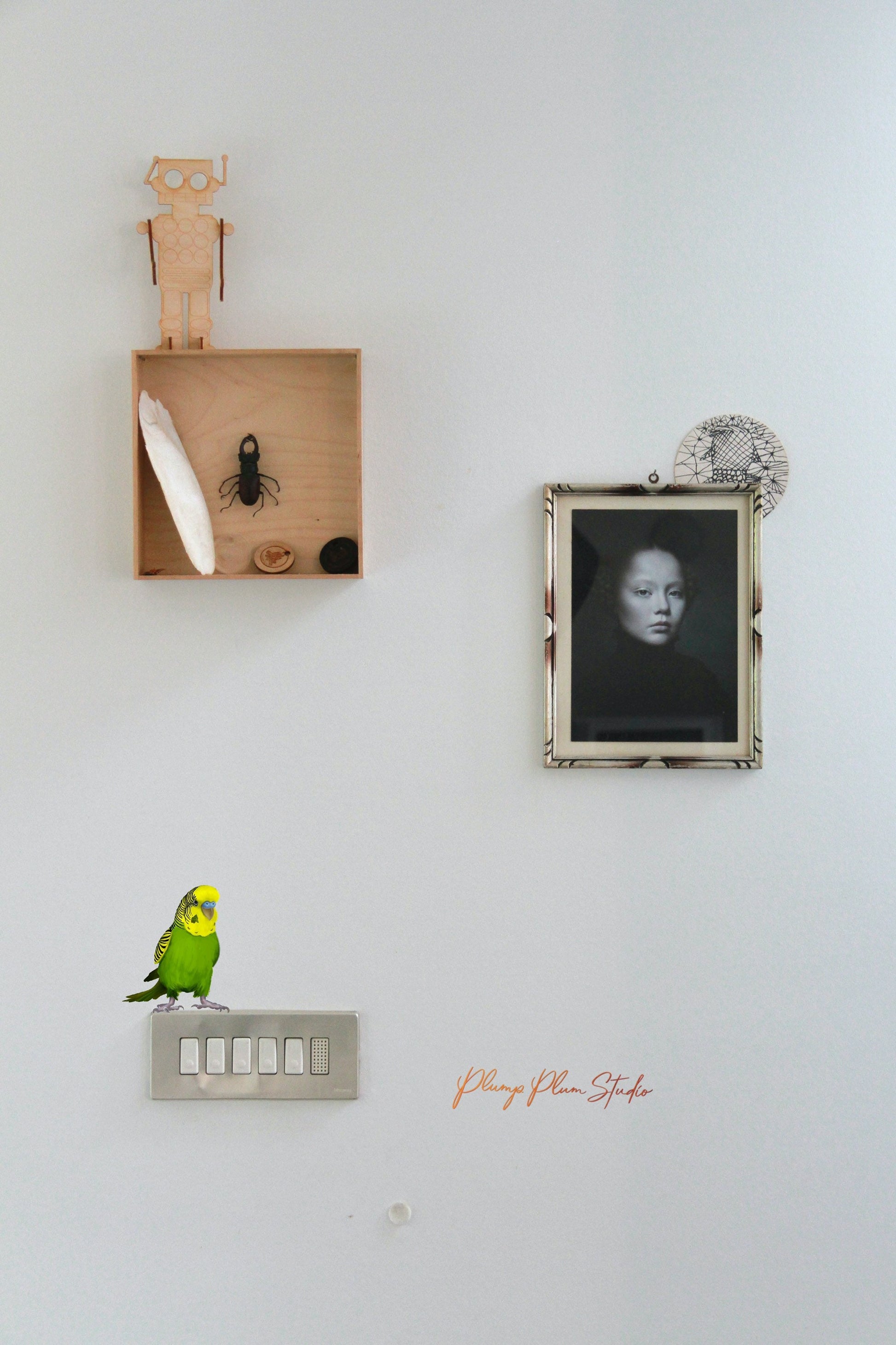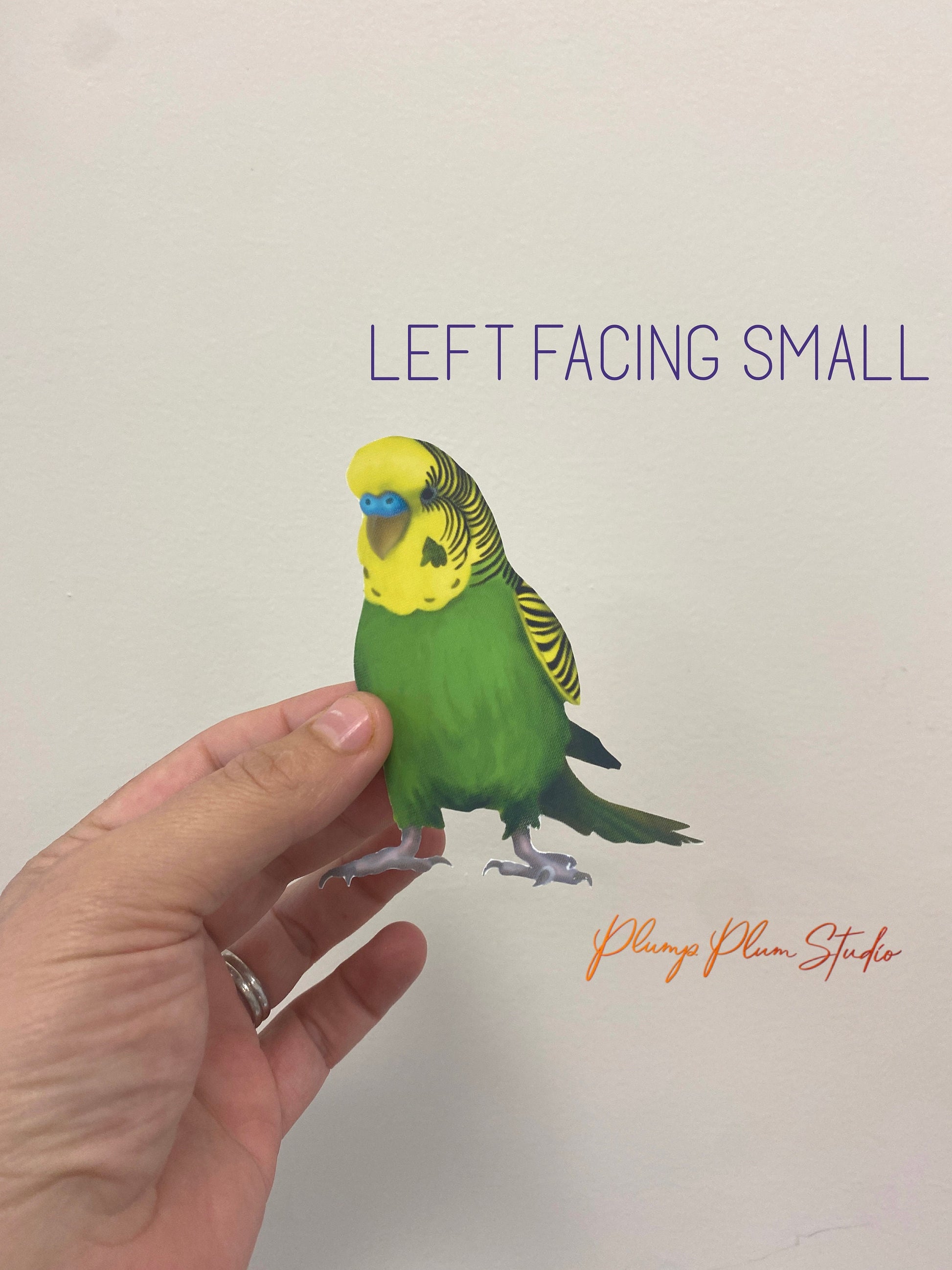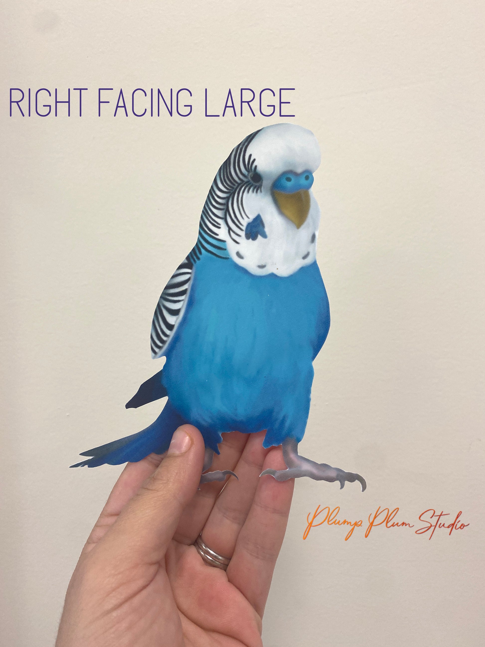 Adorable, popular Australian budgerigar, one of Australia’s most well-known birds. They are a member of many households, and for good reason too, chirpy personalities make the budgie a wonderful companion. He’ll look fantastic perched on the back of your car, or above your door, or on a window, anywhere in and out of the house.