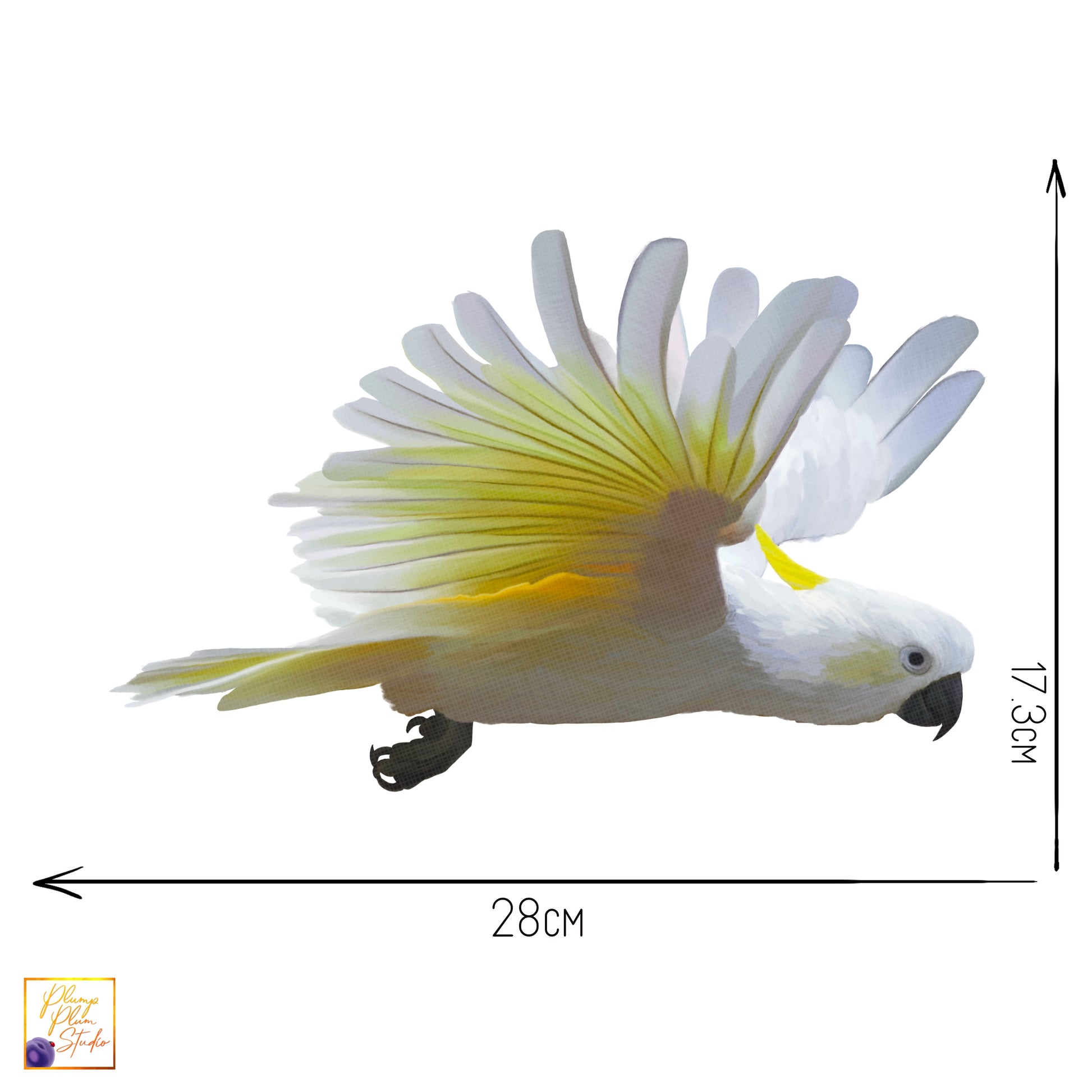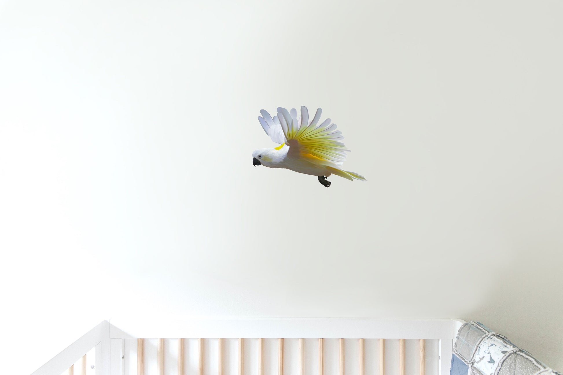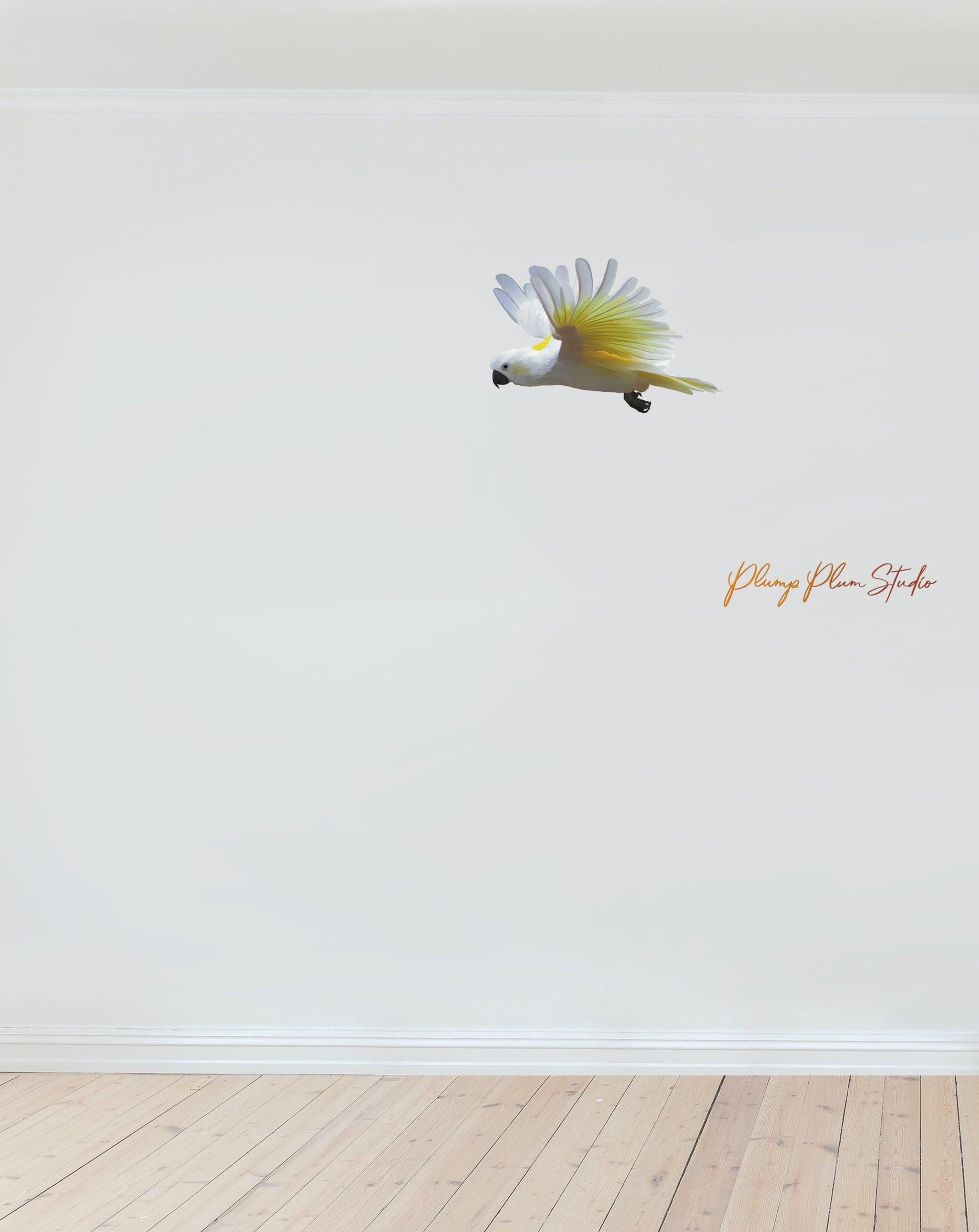 Beautiful Sulfur Crested Cockatoo, one of Australia’s most treasured birds. They are full of character, loud and vibrant. He’ll look fantastic flying along your wall, anywhere in the house, be it the nursery, lounge room, or hallway.