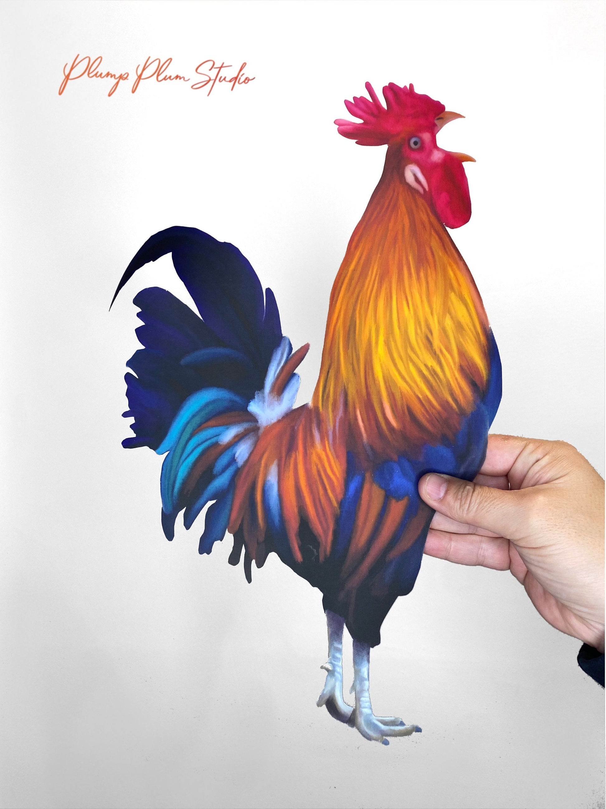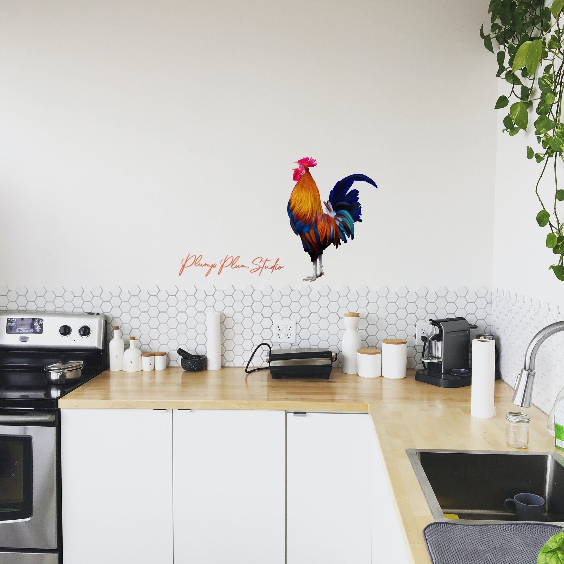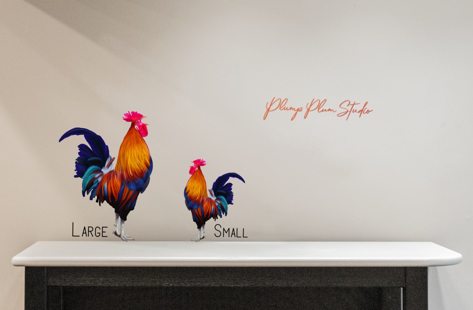 Crowing Rooster decal, colourful realistic rooster sticker, farmhouse decor, deluxe indoor/outdoor repositionable fabric texture vinyl