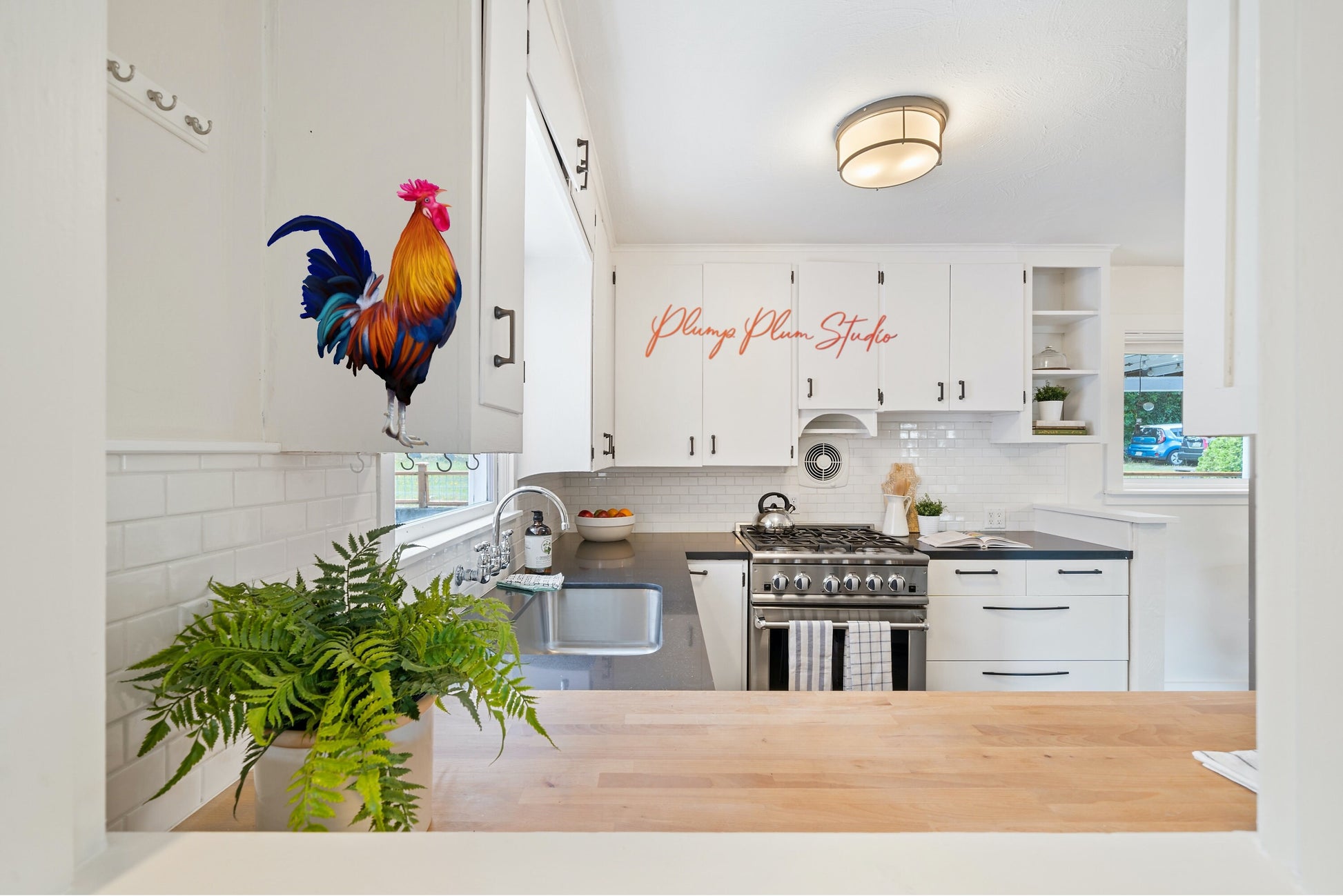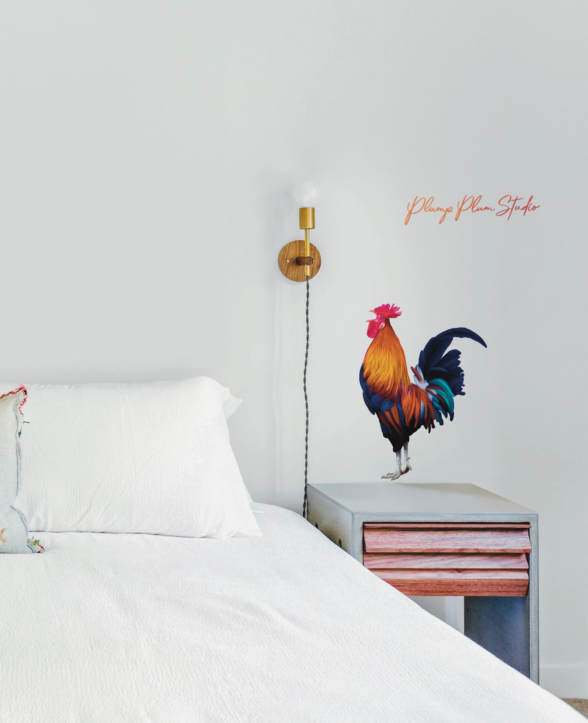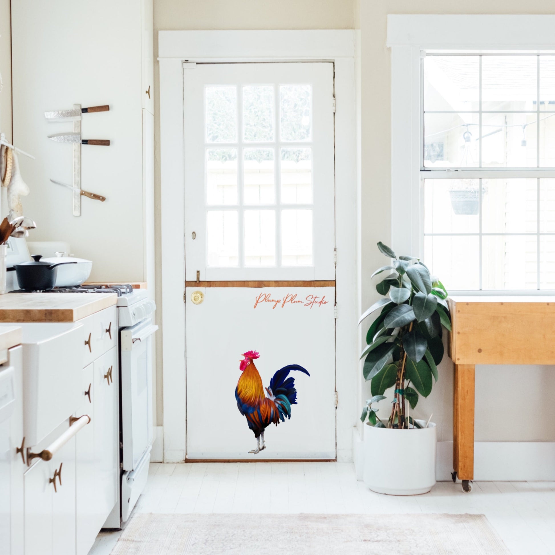 Crowing Rooster decal, colourful realistic rooster sticker, farmhouse decor, deluxe indoor/outdoor repositionable fabric texture vinyl
