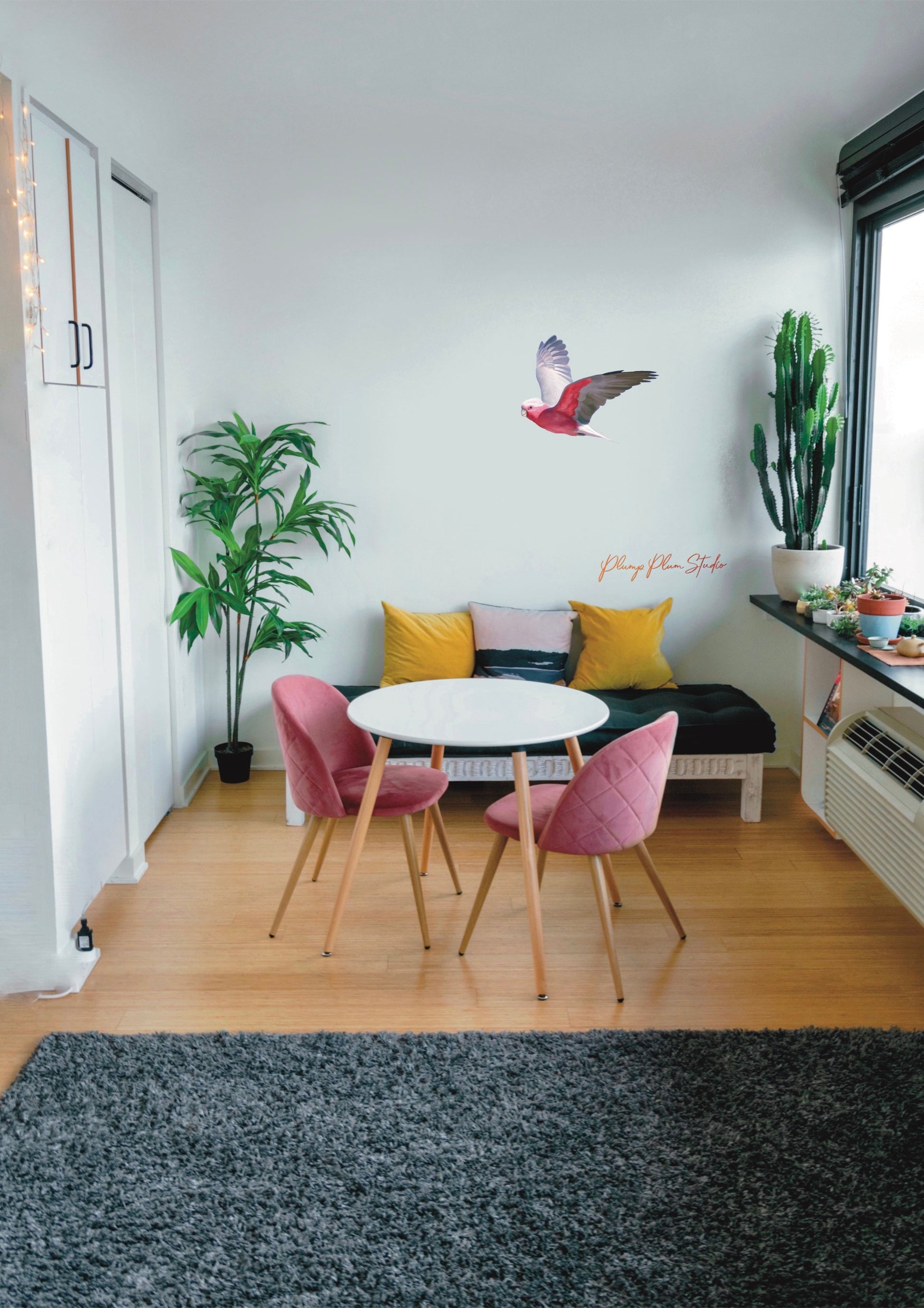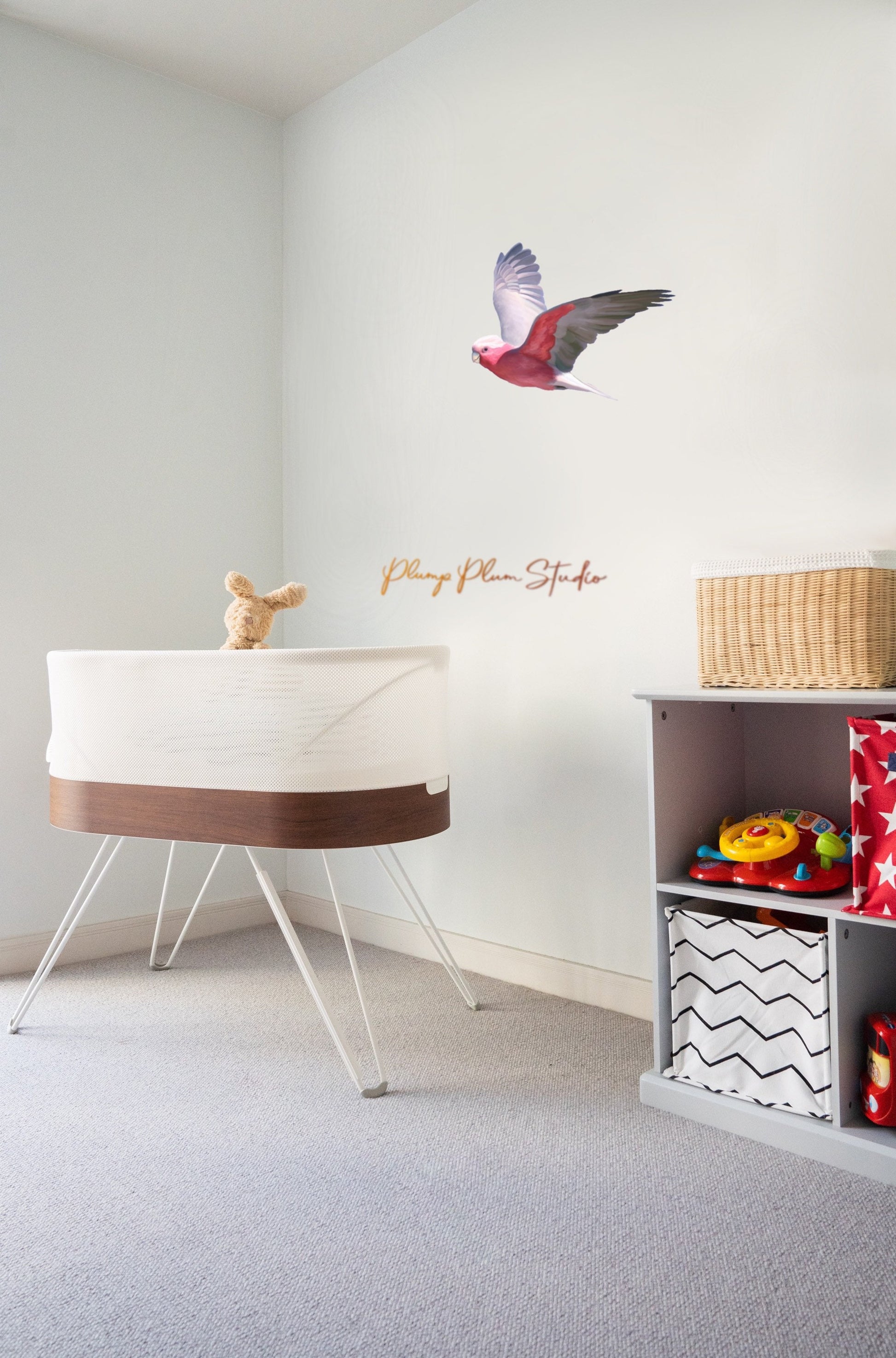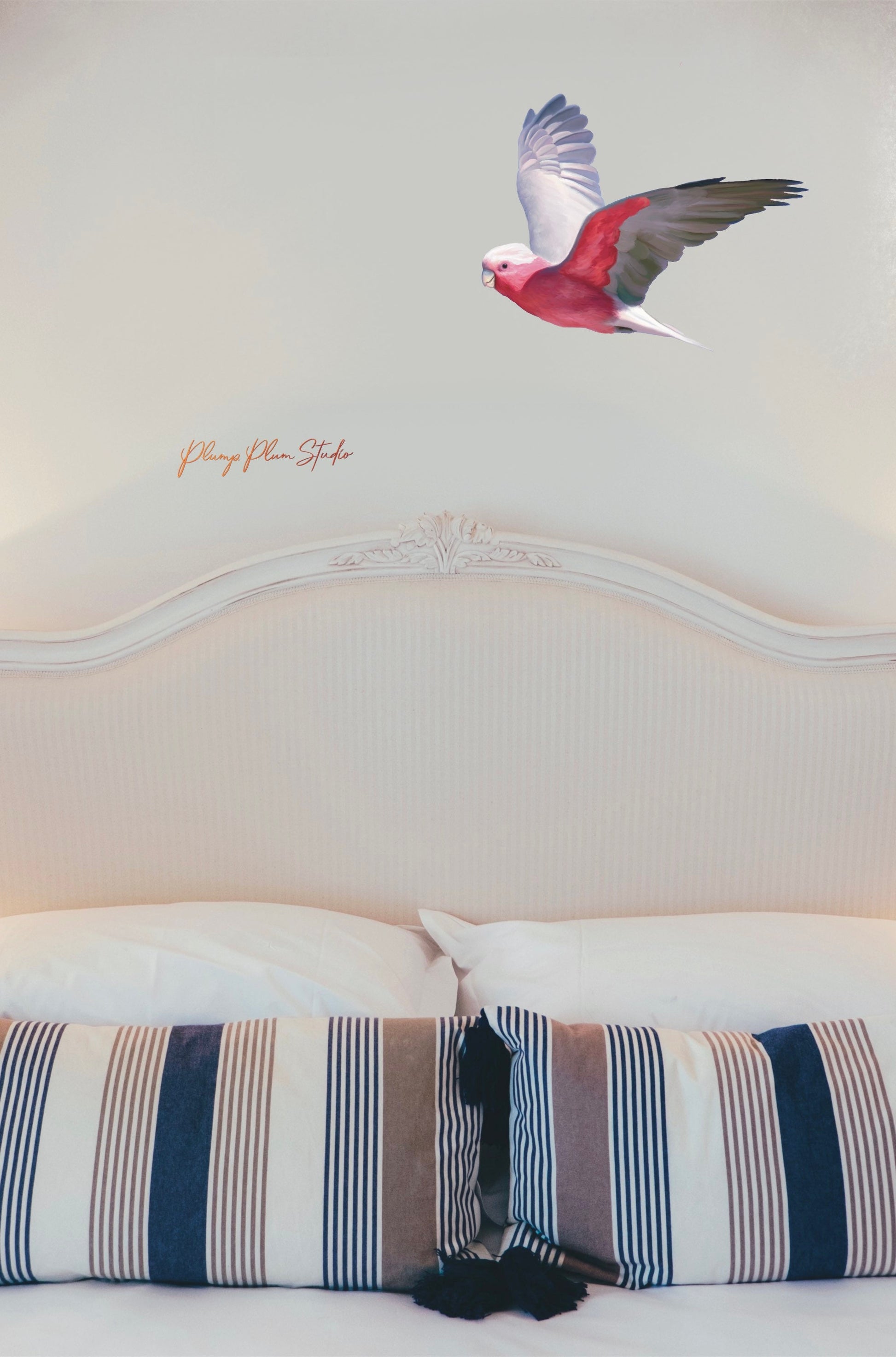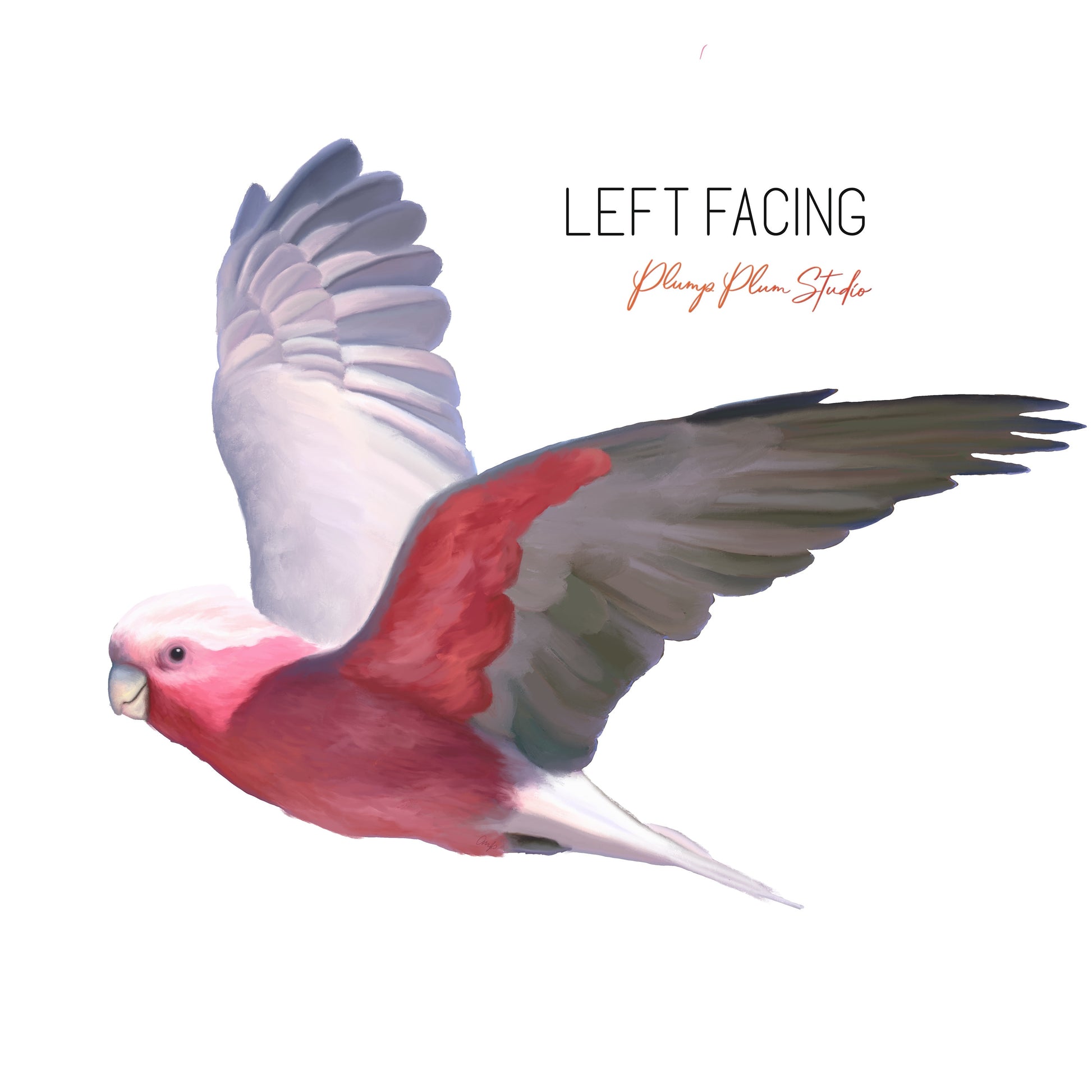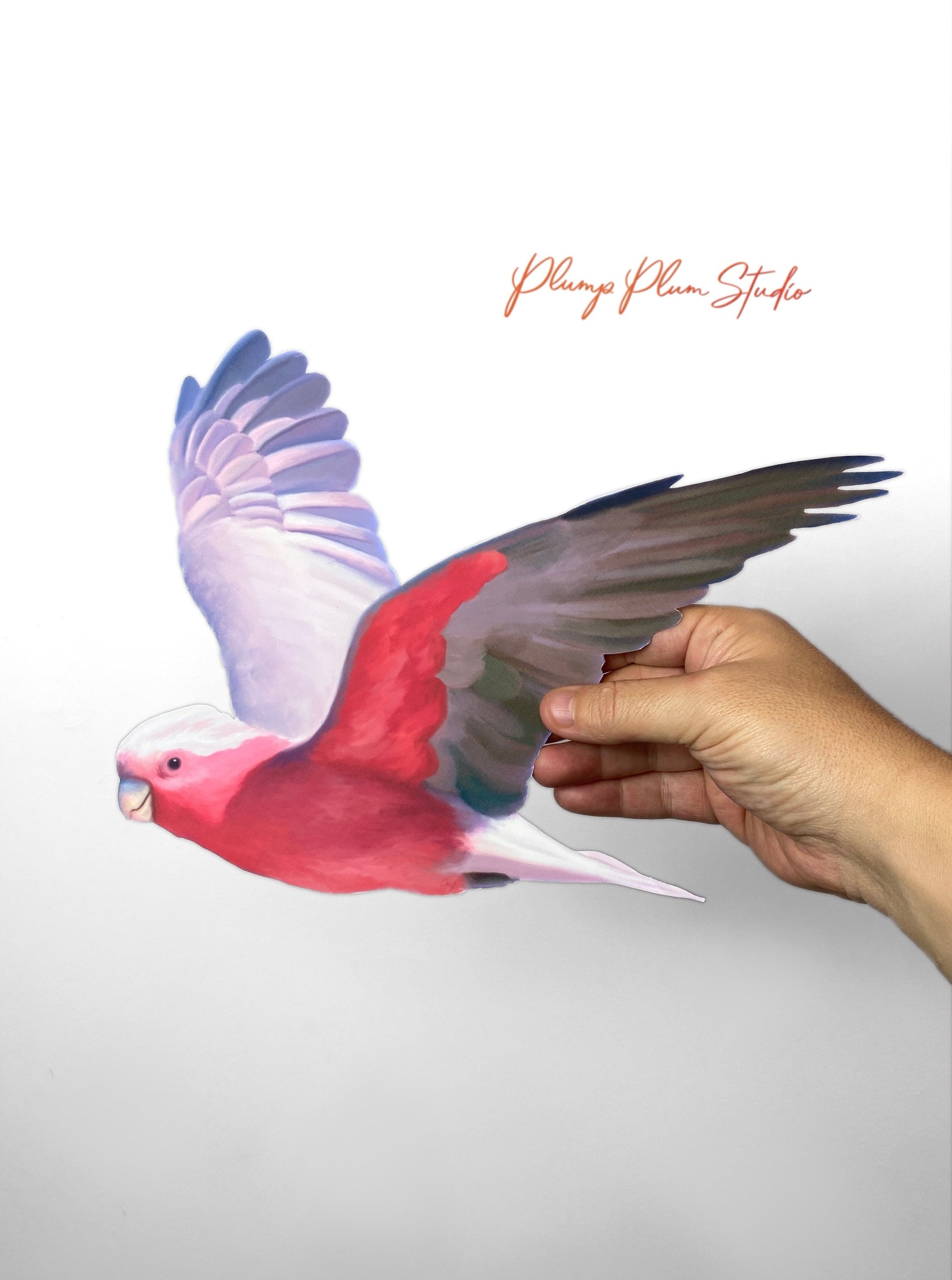 Beautiful Pink Galah, one of Australia’s most favourite parrots. They are full of character, loud and vibrant. He’ll look fantastic flying above your door or positioned on the wall above the cot or couch, anywhere in the house. He'll look fantastic on your car or wheelie bin or flying past your window.
