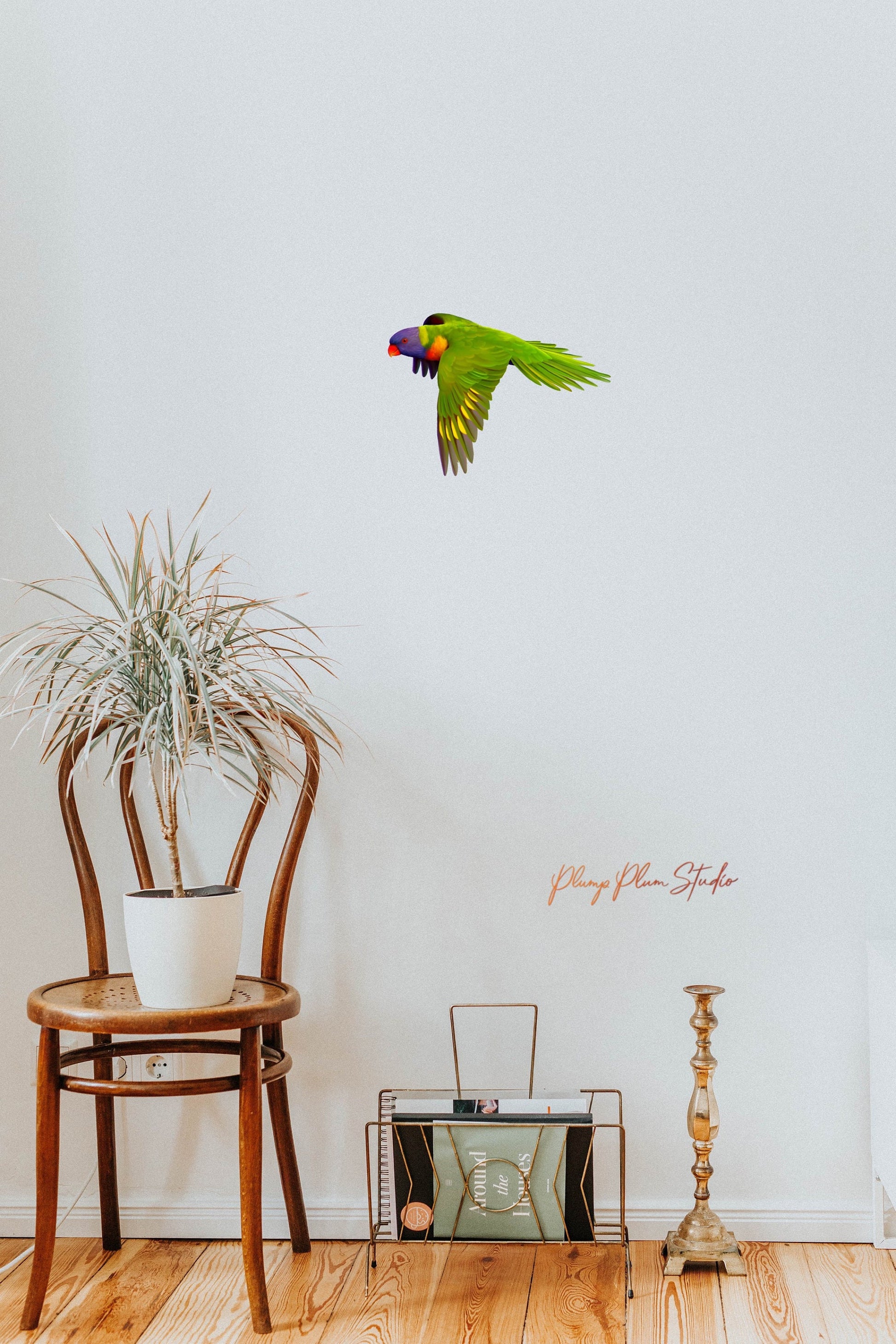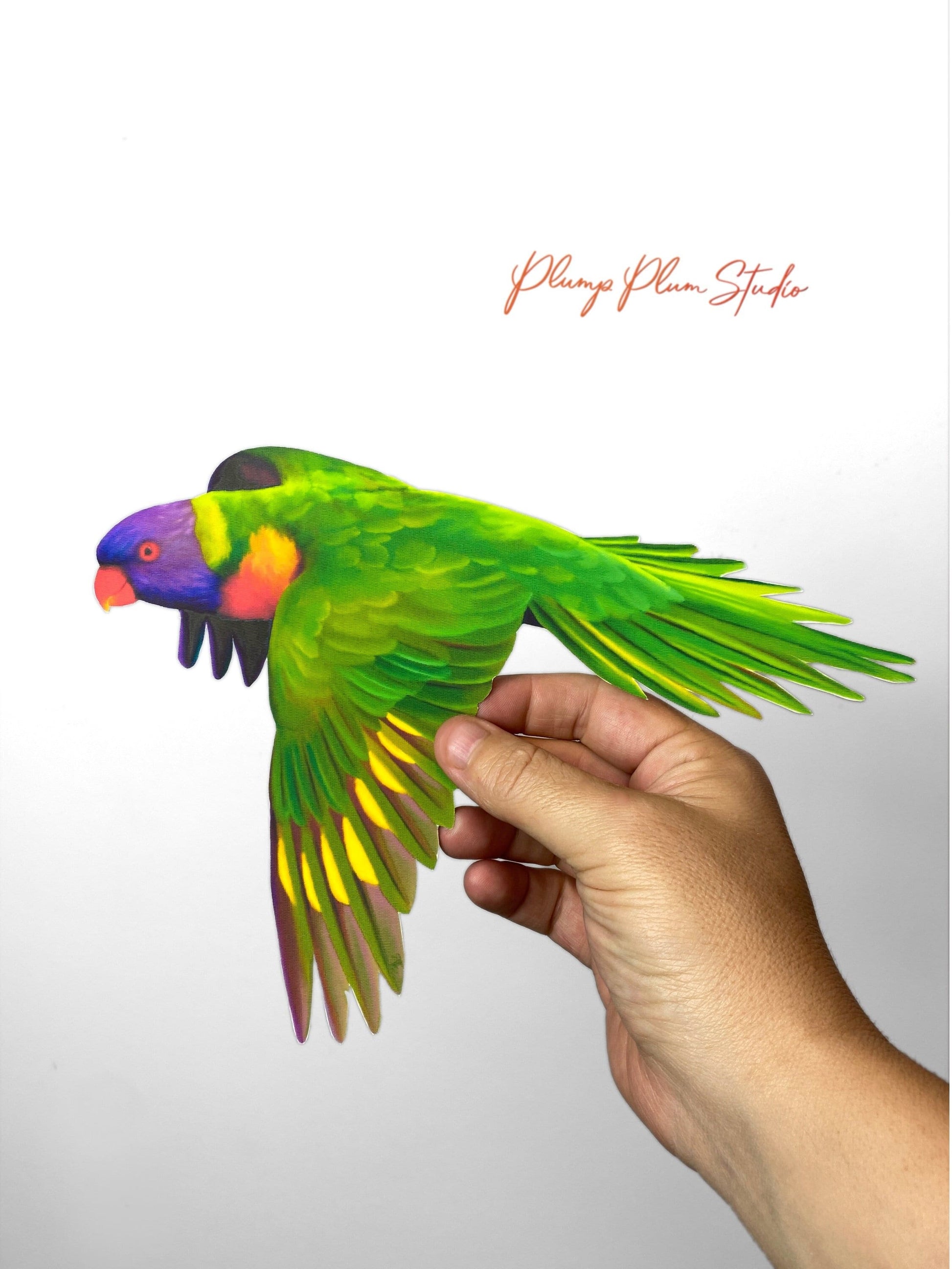 Flying Rainbow Lorikeet vinyl decal, light switch decal, car decal, Australian parrot decal, fabric textured vinyl, lorikeet parrot sticker