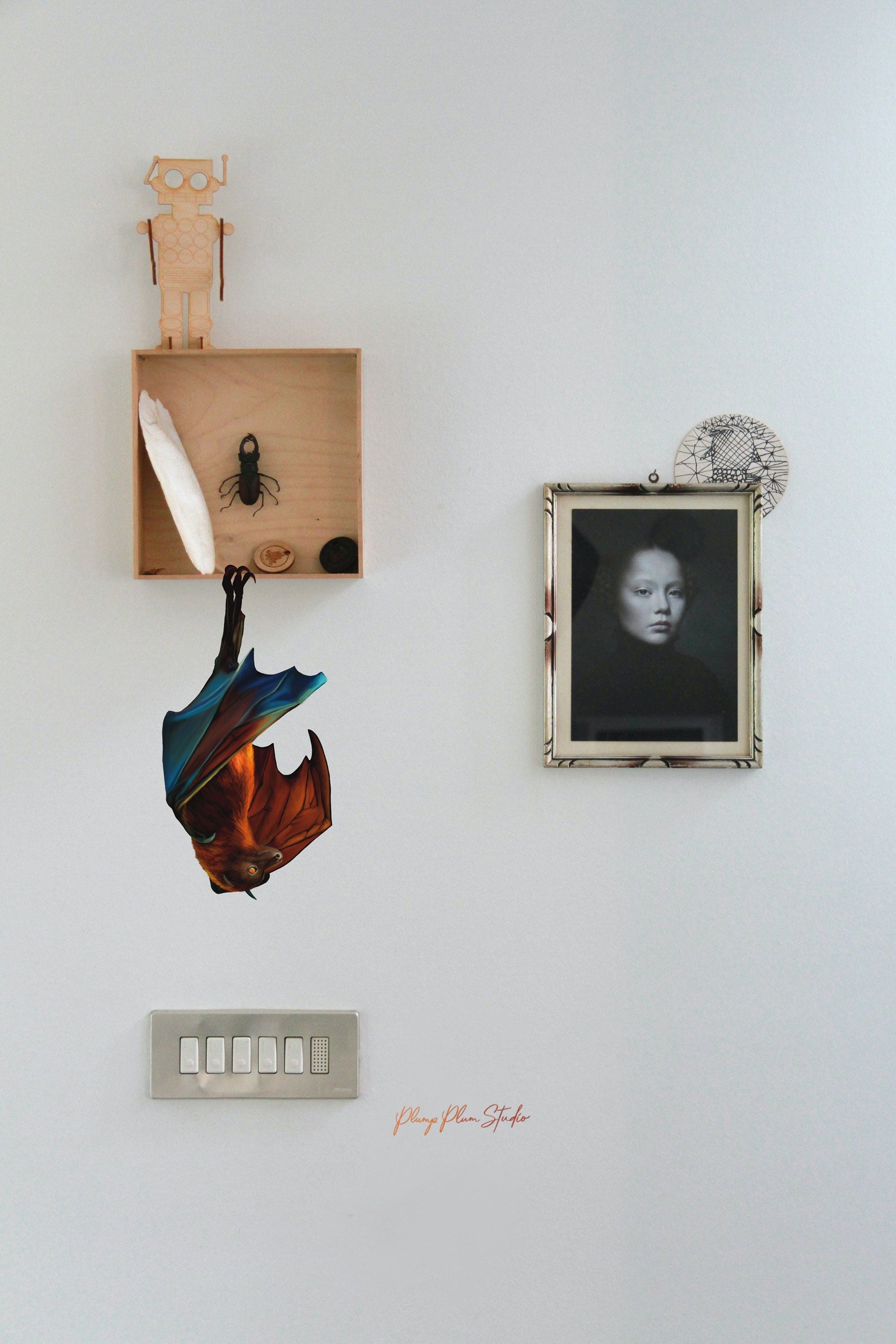 The iconic Australian Fruit Bat, one of Australia’s most recognisable nocturnal creatures. Known also as a Flying fox, as they have the appearance of a fox's head. You can spot them silently flying through the air at night and may even land in your backyard if you some so fruit to steal. He’ll look fantastic hanging from switch on your wall, or anywhere in or out of the house.