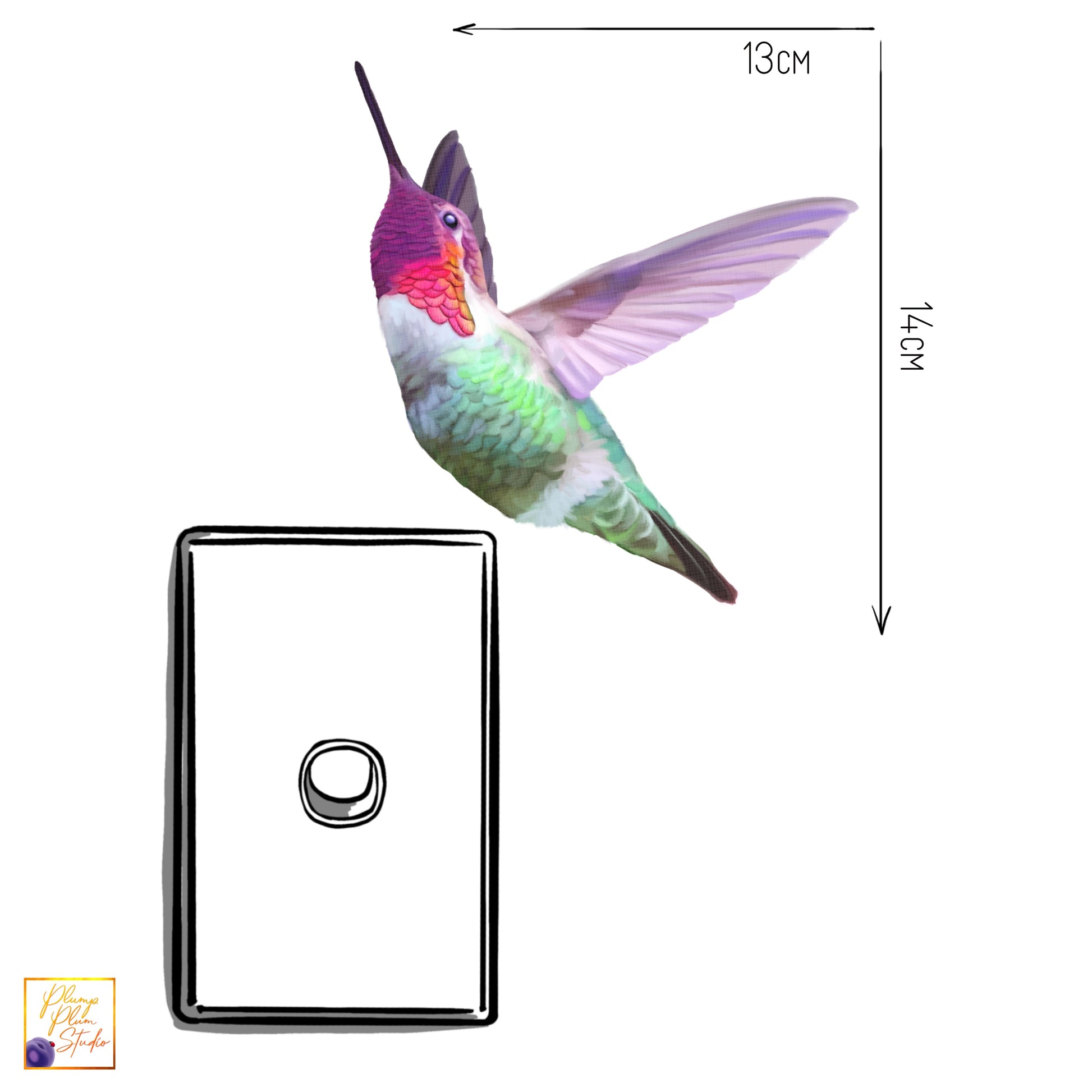 Hummingbird decal, Hummingbird sticker, peel and stick, light switch decal, realistic bird decal, colourful bird sticker, laptop sticker