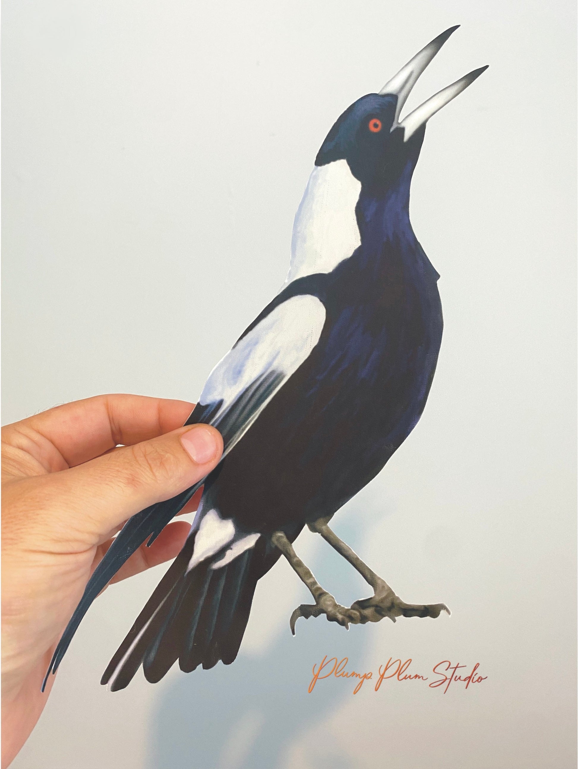 The iconic Australian Magpie, one of Australia’s most recognisable birds. They are full of character, loud and vibrant, and all Aussies to keep a wary eye out for them during Spring. He’ll look fantastic warbling above your light switch on your wall, or anywhere in the house, be it the nursery, lounge room, or hallway.
