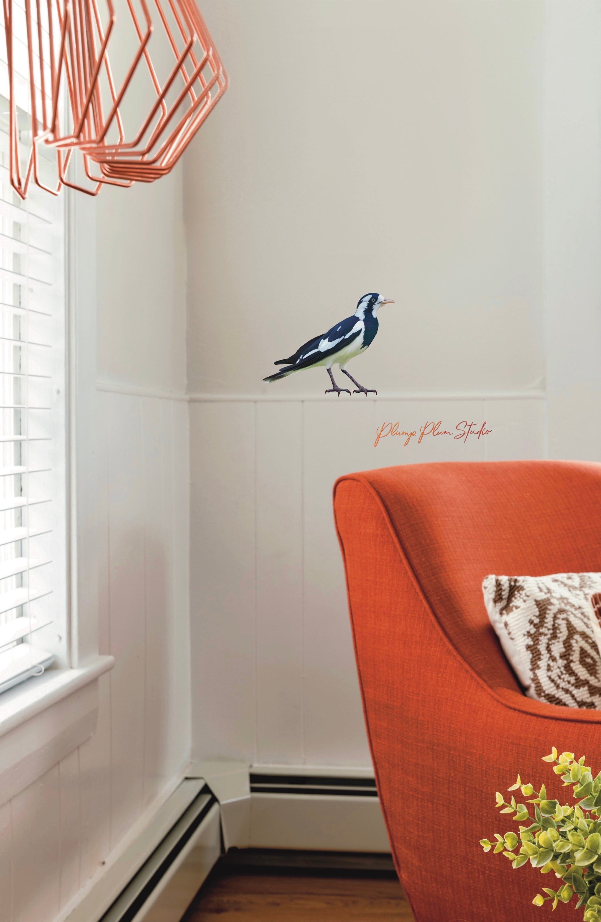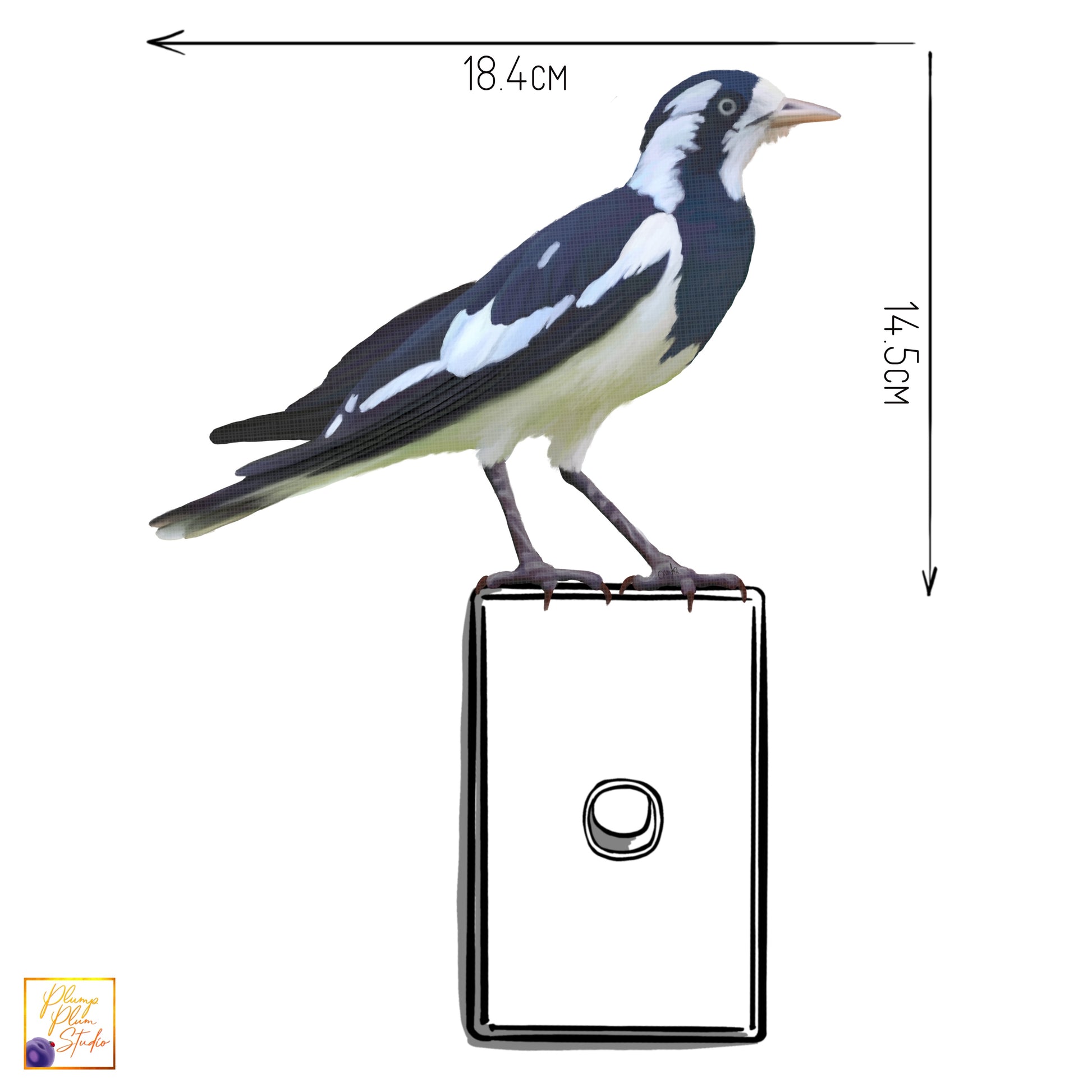 Magpie-lark bird decal, Black/white Peewee bird sticker, indoor/outdoor vinyl, light switch decal, Australian Peewit or mud lark bird decal