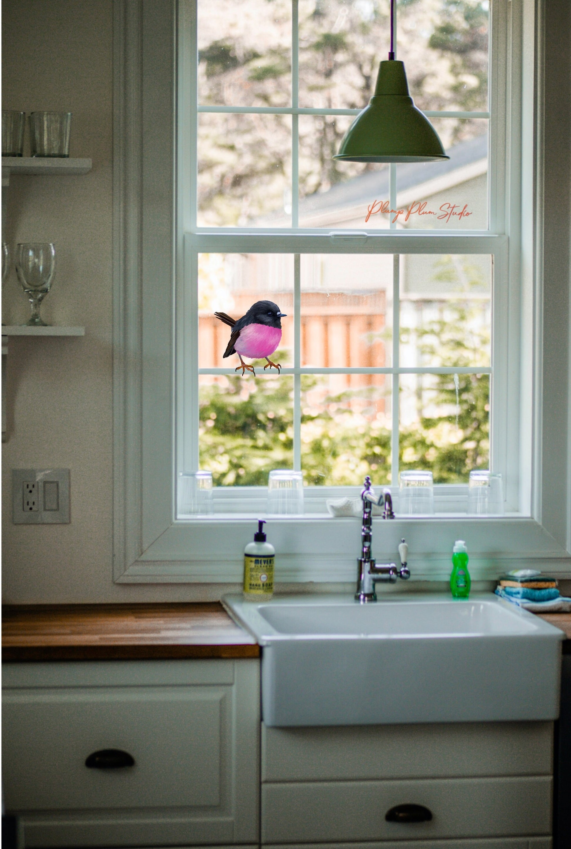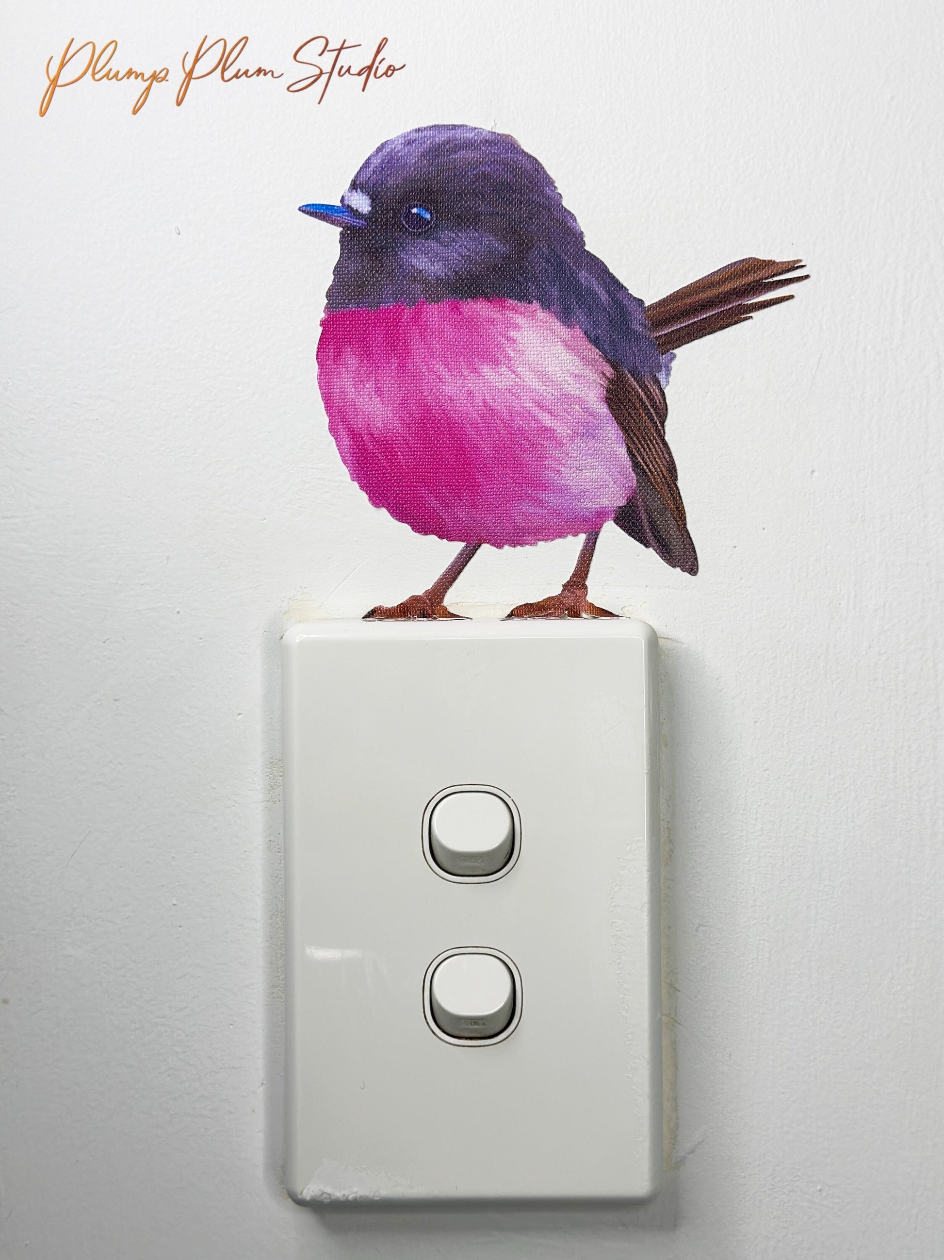 Adorable, cute Australian Pink Robin, one of Australia’s most gorgeous little birds. They are a flying pink jewel and will brighten anyone’s day. This piece is suitable for all clean, smooth surfaces, inside and out.