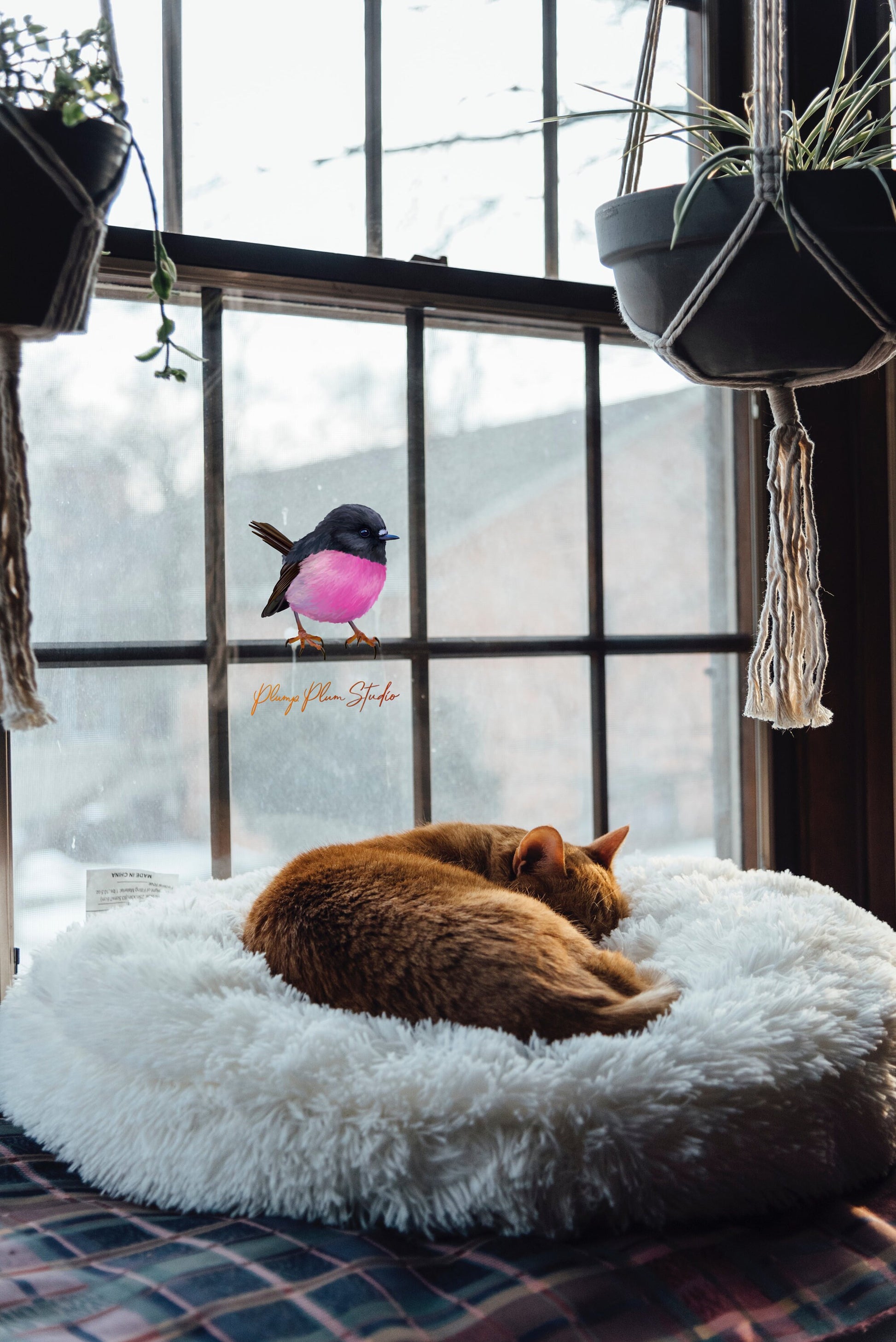 Pink Robin decal, pink bird sticker, peel/stick, light switch decal, cute little bird decal, fabric textured decal, repositionable car decal