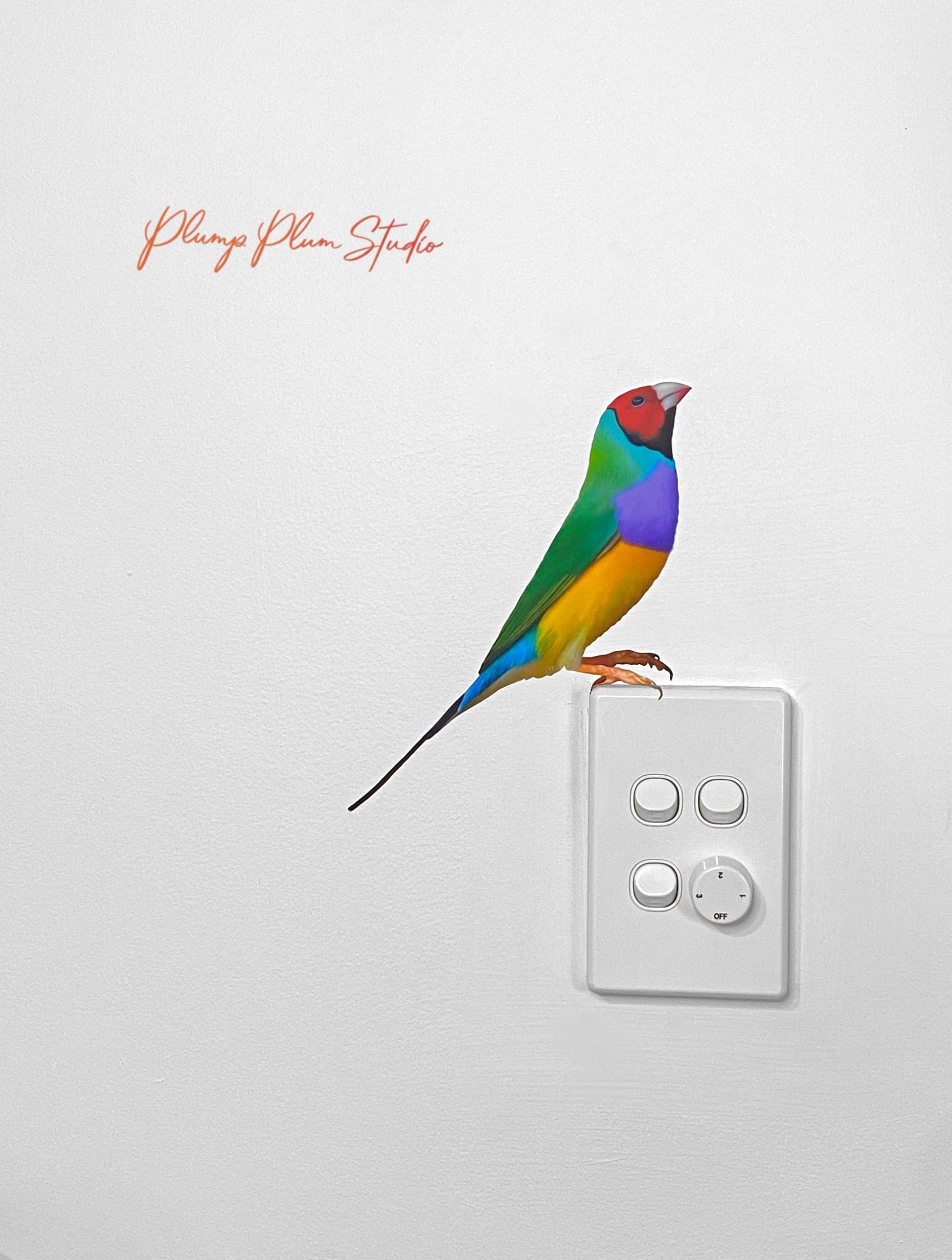Australian Rainbow Gouldian Finch, one of Australia’s most gorgeous little birds. They are a flying jewel and will brighten anyone’s day. This piece is suitable for all clean, smooth surfaces, inside and out.