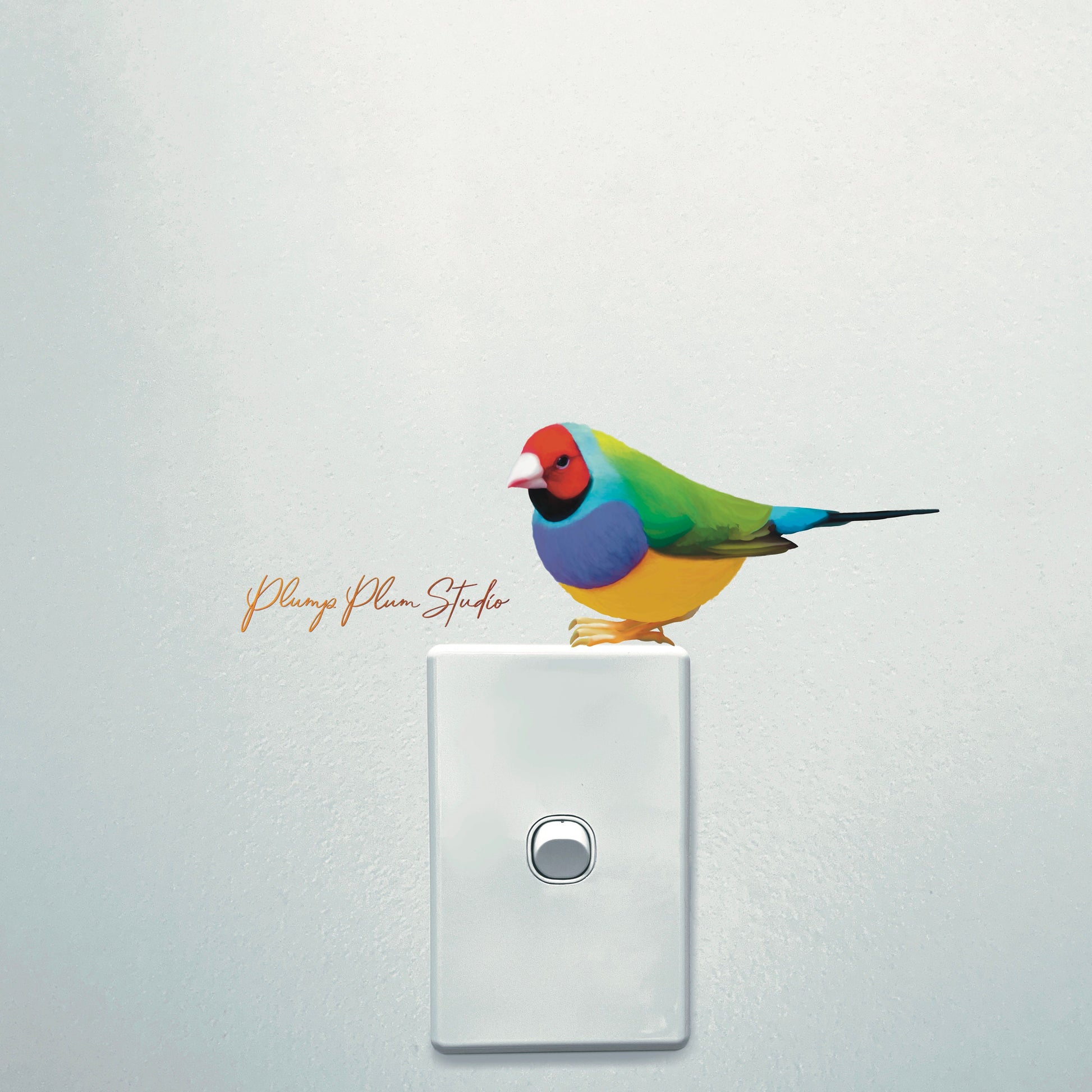 Rainbow Finch decal, Gouldian Finch sticker, outdoor/indoor, light switch decal, cute little bird, vinyl wall decal, repositionable vinyl