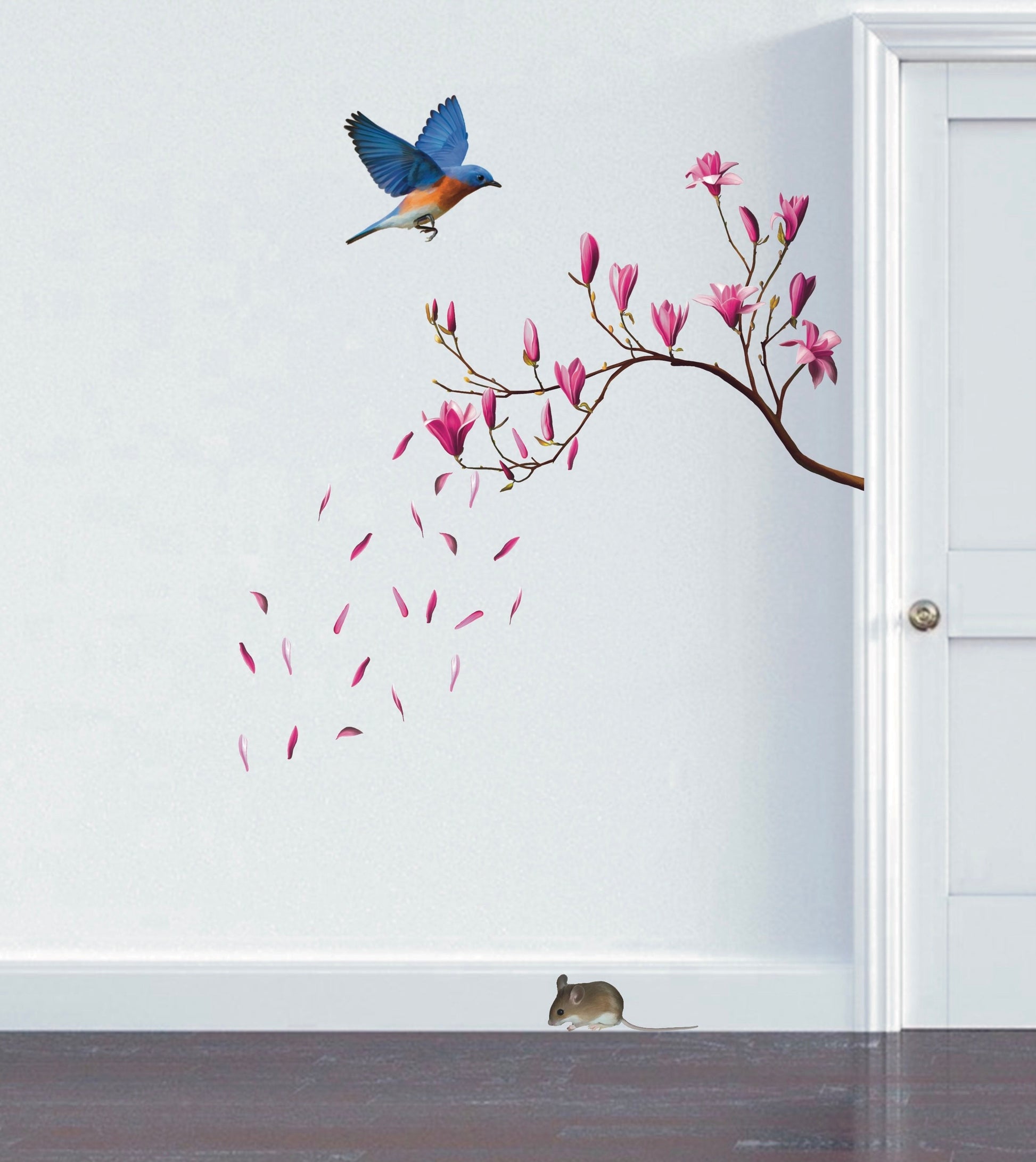One little cute wood mouse, realistically illustrated to even confuse a cat. You can reposition him as many times as you like, put him on your skirting board in a sneaky spot to trick your visitors, or a friendly position in the kitchen to greet you in the morning, your imagination is the limit! This piece is suitable for all clean, smooth surfaces, inside and out.