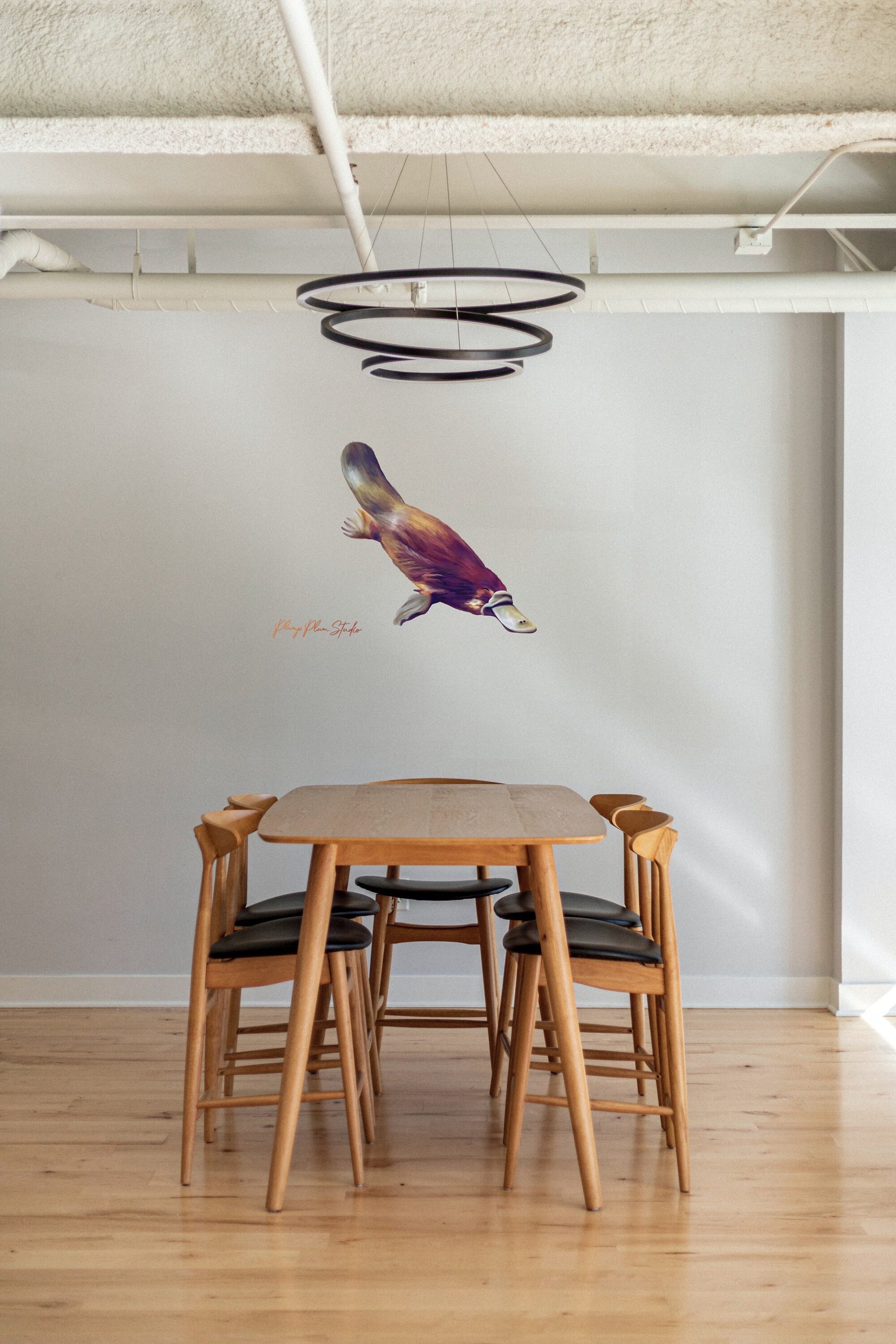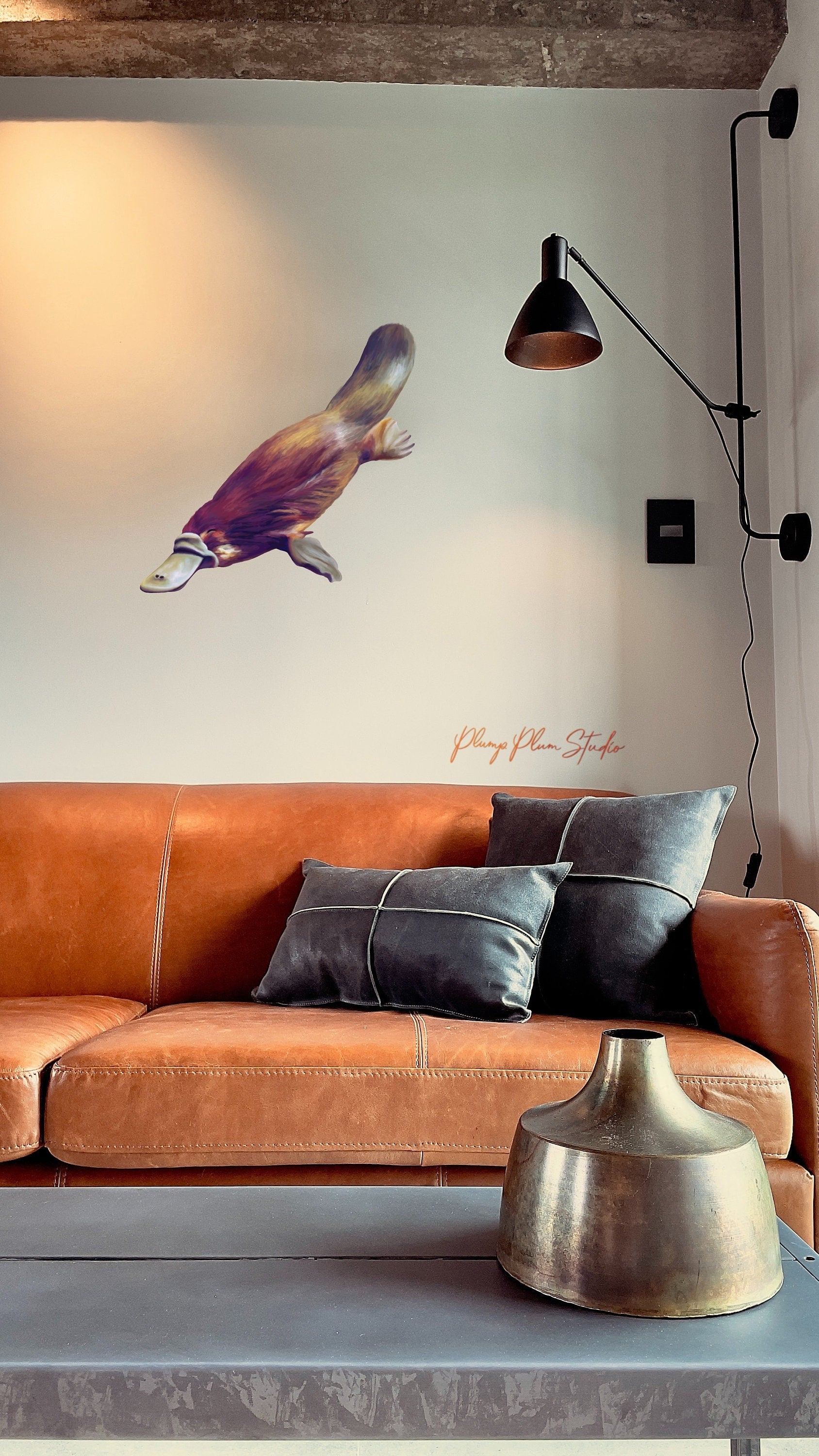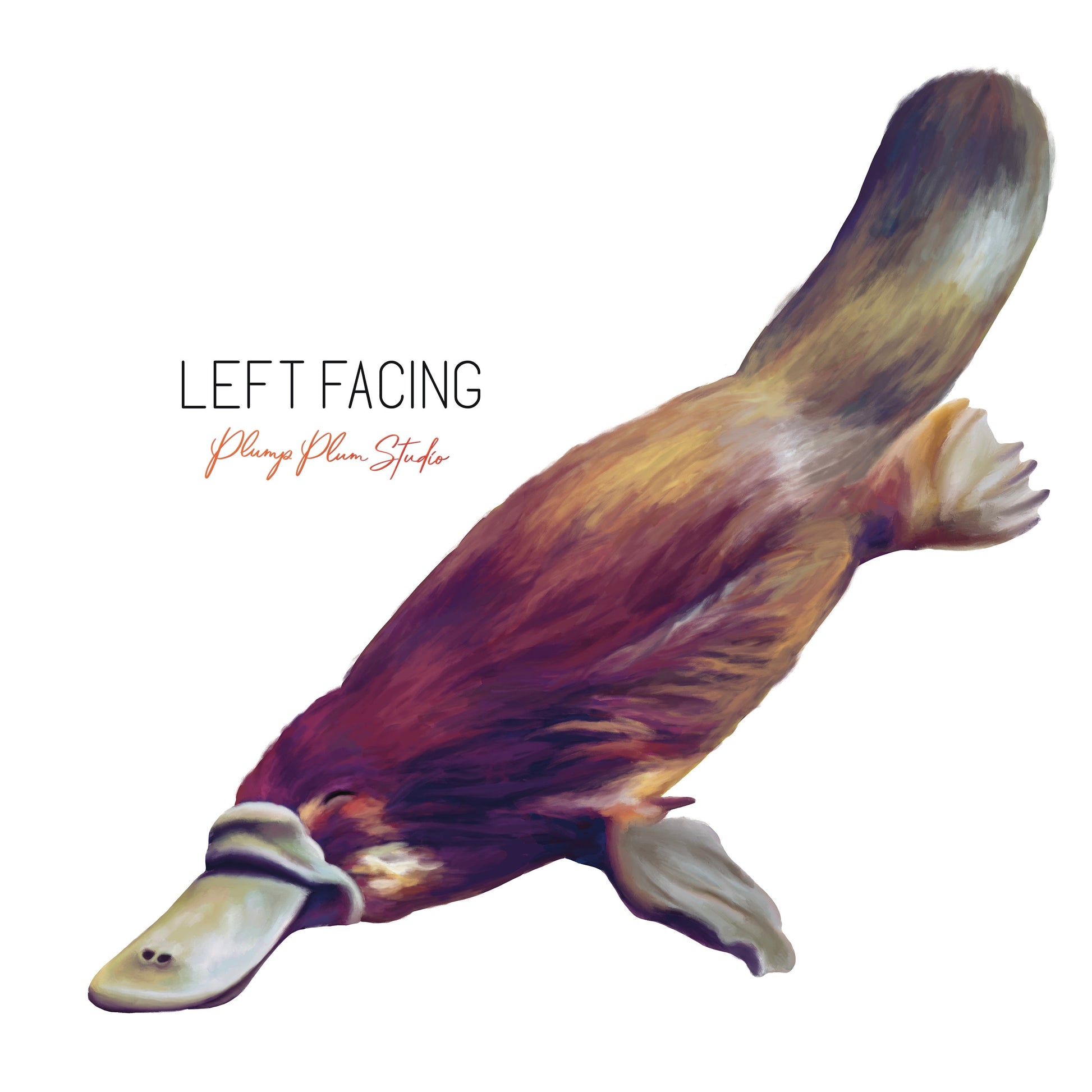 One swimming platypus, submerged in the creek that is his home. Realistically illustrated. One of the many cute and unusual Australian animals. You can position him inside and out, put him on your car, or down the end of the hallway, above the kids' bed, your imagination is the limit!