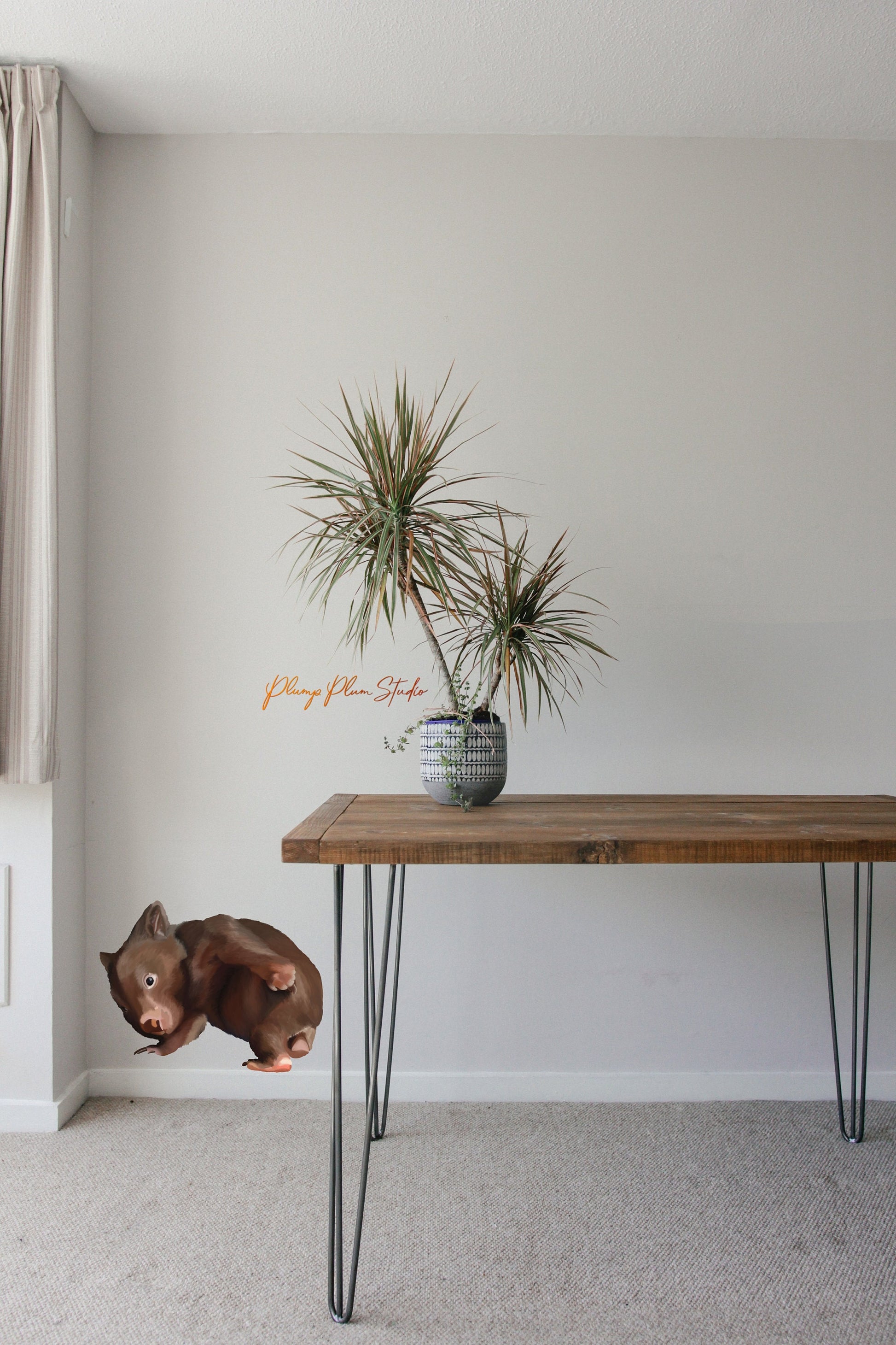 One cute furry joey wombat having a little scratch, realistically illustrated. One of the many cute marsupials found in Australia. You can position outside on your car or put him on a door, or on the wall, down the end of the hallway, above the kids' bed, your imagination is the limit!