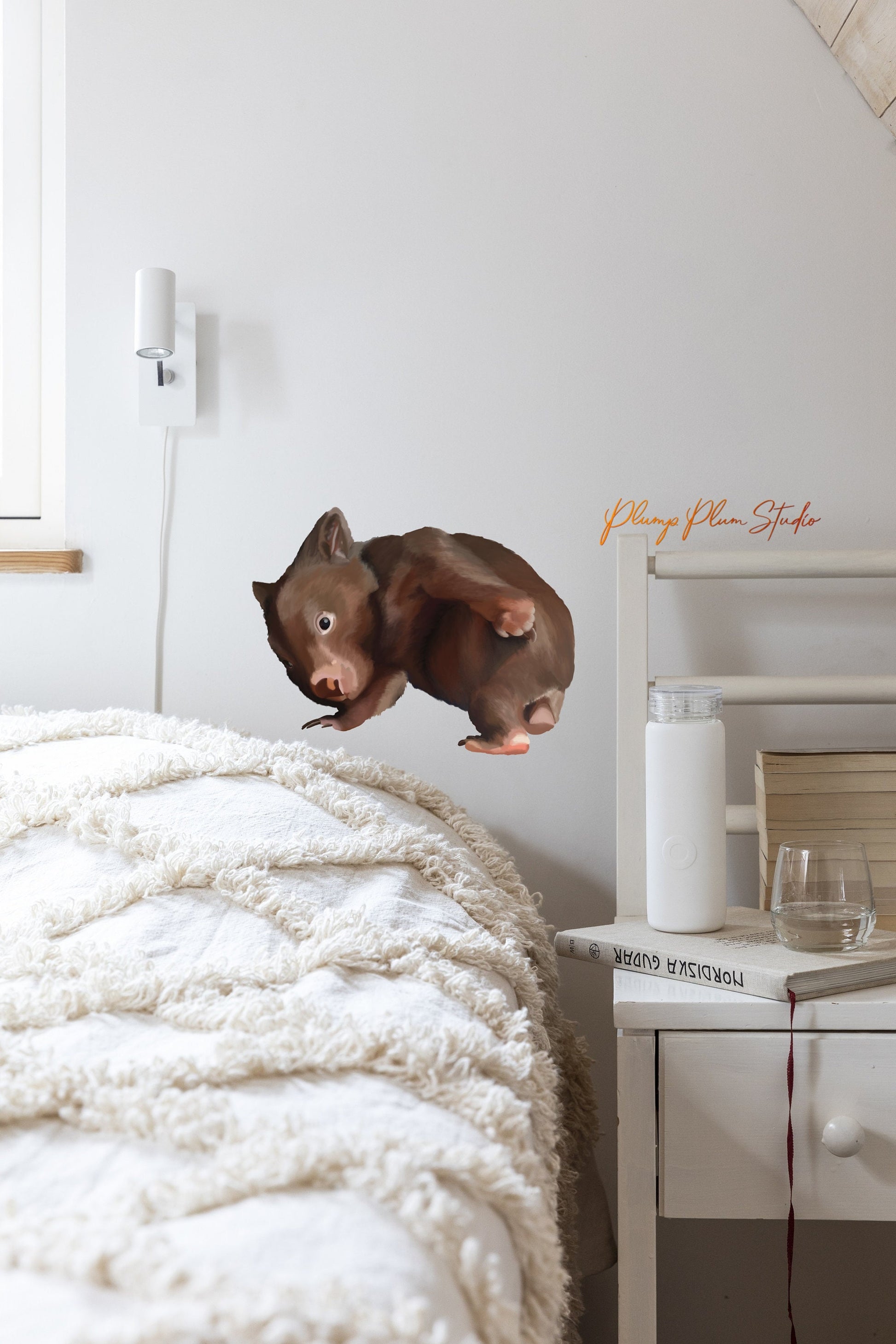 Realistic wombat decal, Australian animal sticker, illustrated wombat, baby wombat sticker, repositionable textured vinyl, wall or car decal