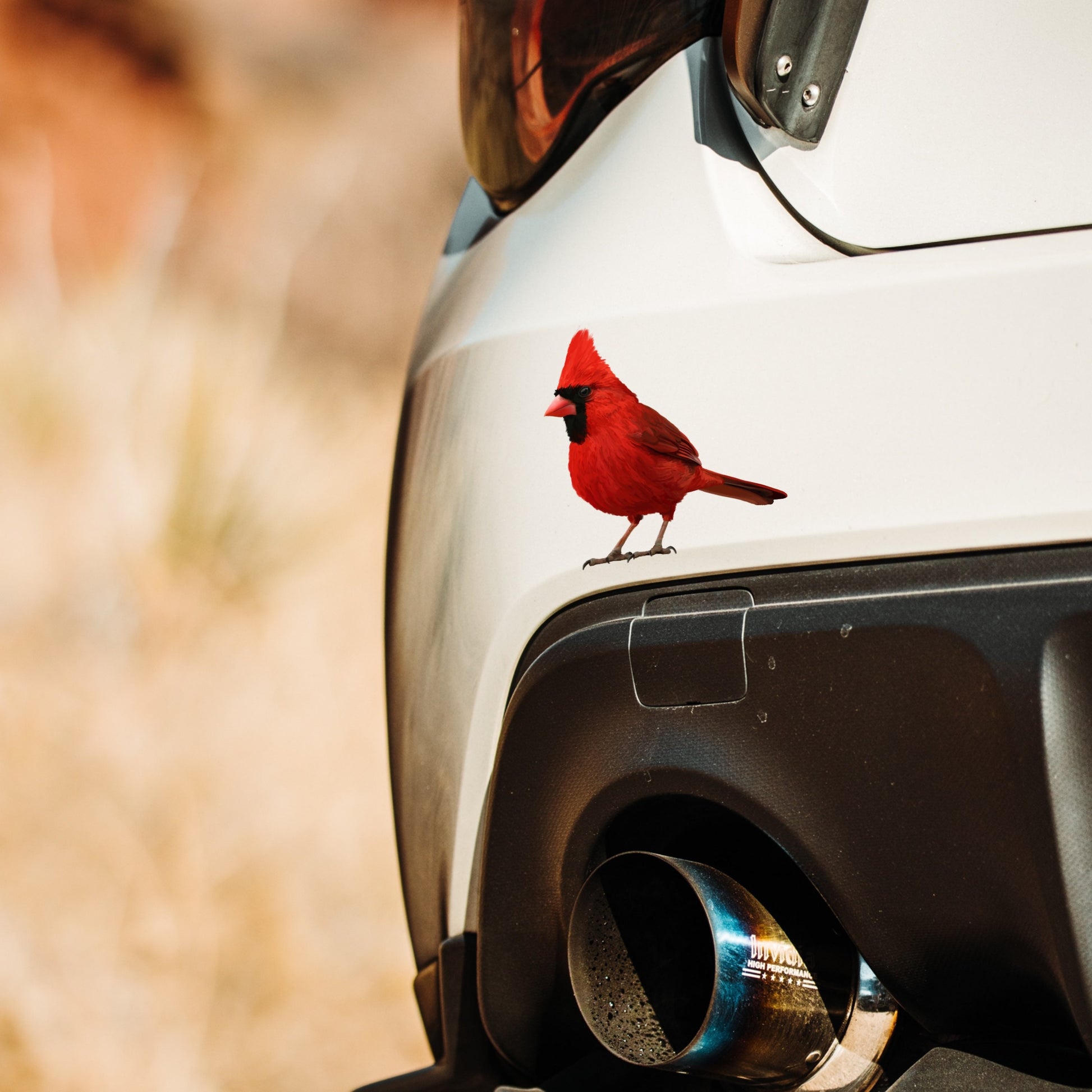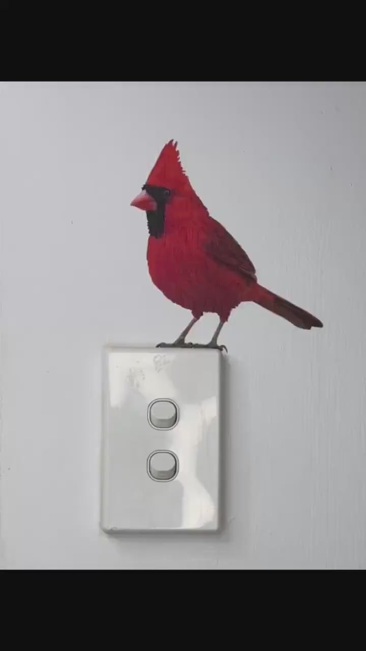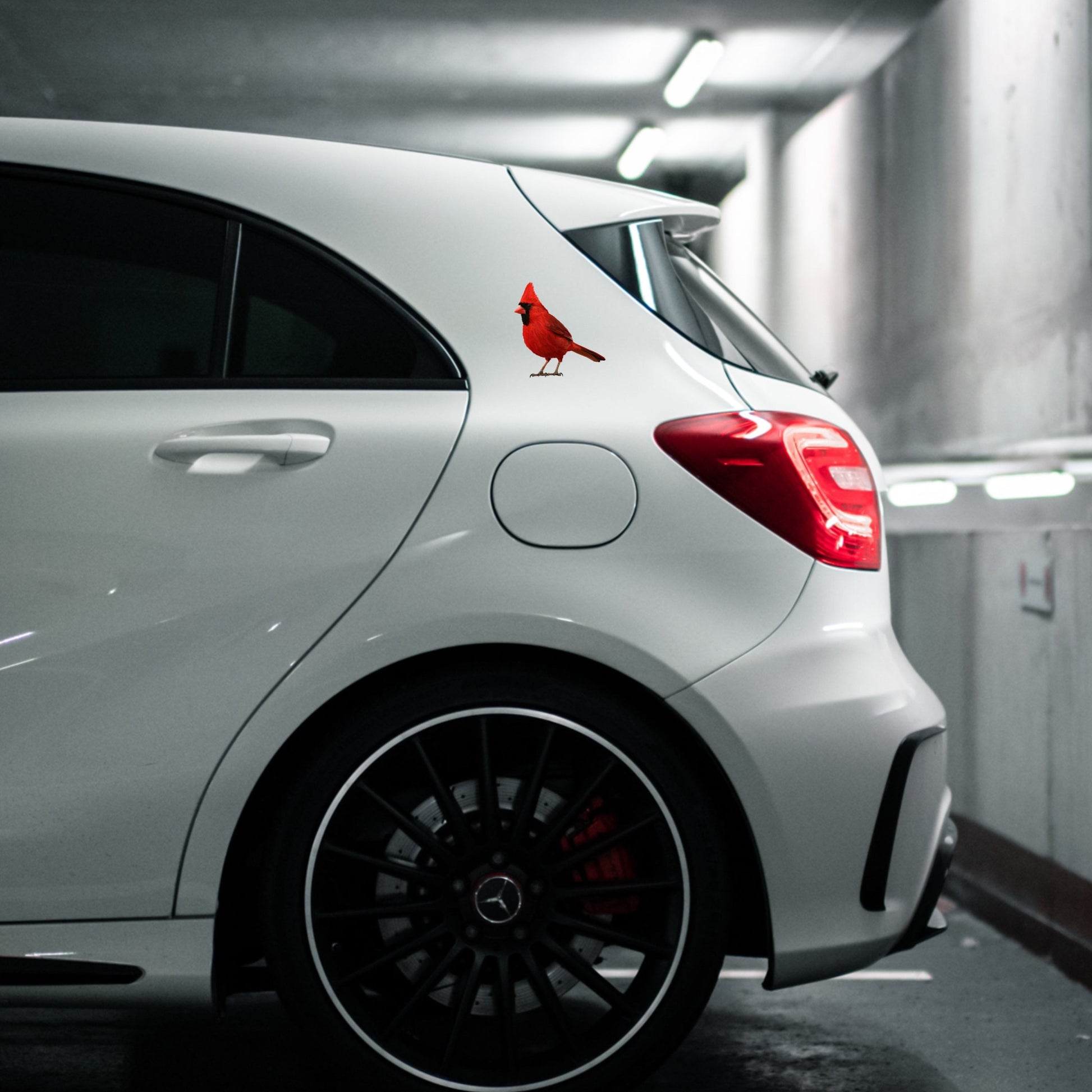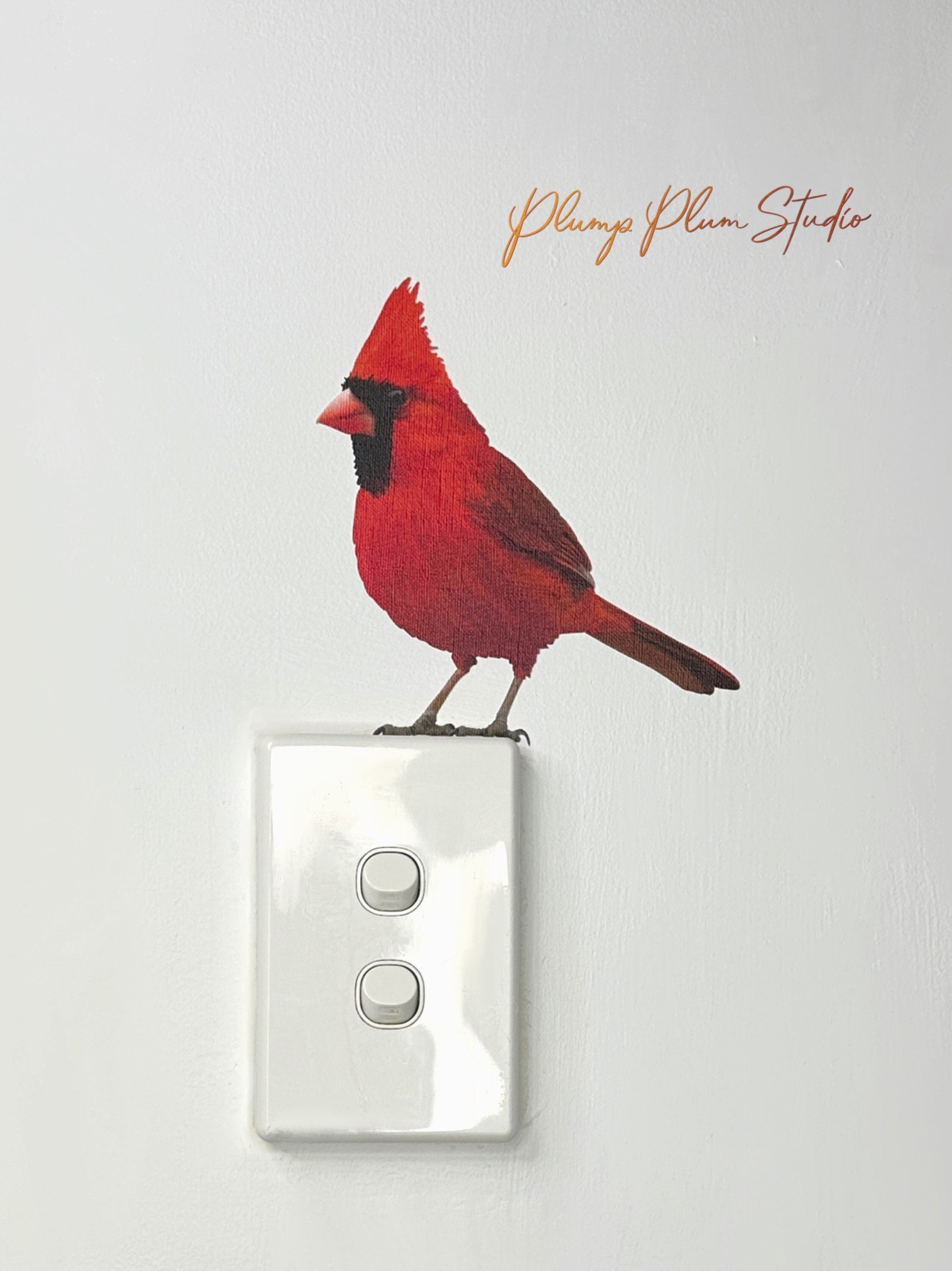 Bright and fabulous Red Cardinal, is a beautiful red bird of North America. He will look eye-catching perched above your light switch or on the back of the car, put him anywhere smooth and clean - your imagination is the limit!