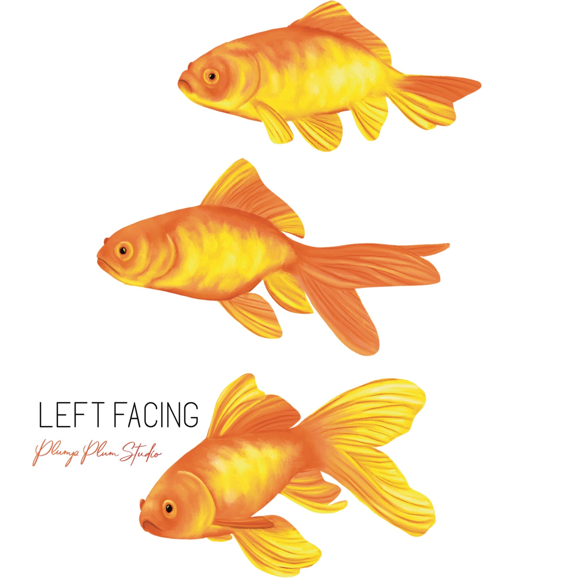 A set of 3 Goldfish stickers. Suitable for car decals or other outdoor uses. Great to dance on the wall over your newborn, or swimming along your lounge room wall. Stick them on your laptop, fridge or along your skirting board - your imagination is your limit!