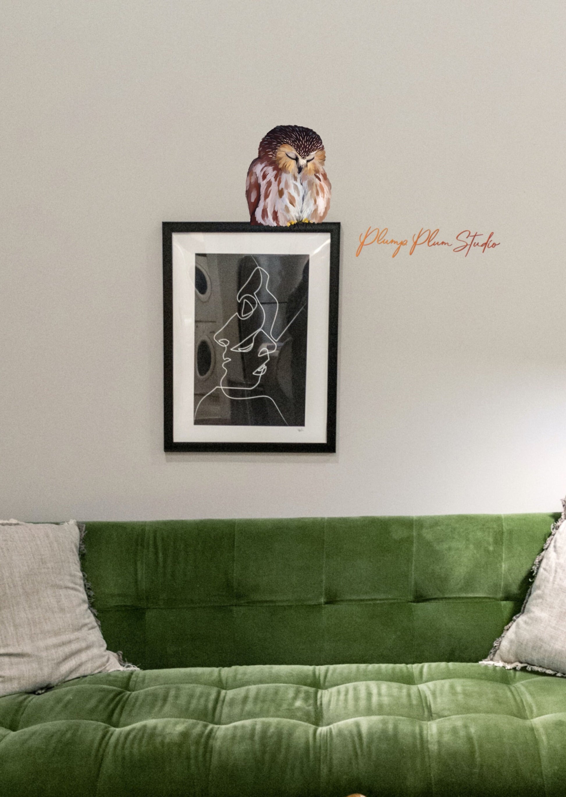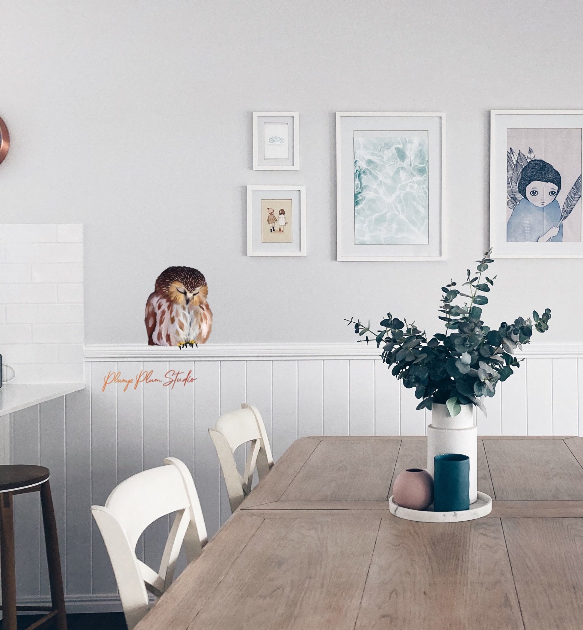 Brighten up a dull corner with the natural beauty of this little sleeping owl. This piece is suitable for all clean, smooth surfaces, inside and out. Not just for the kids, but for the adults that want a pop of whimsy in or outside of their homes.