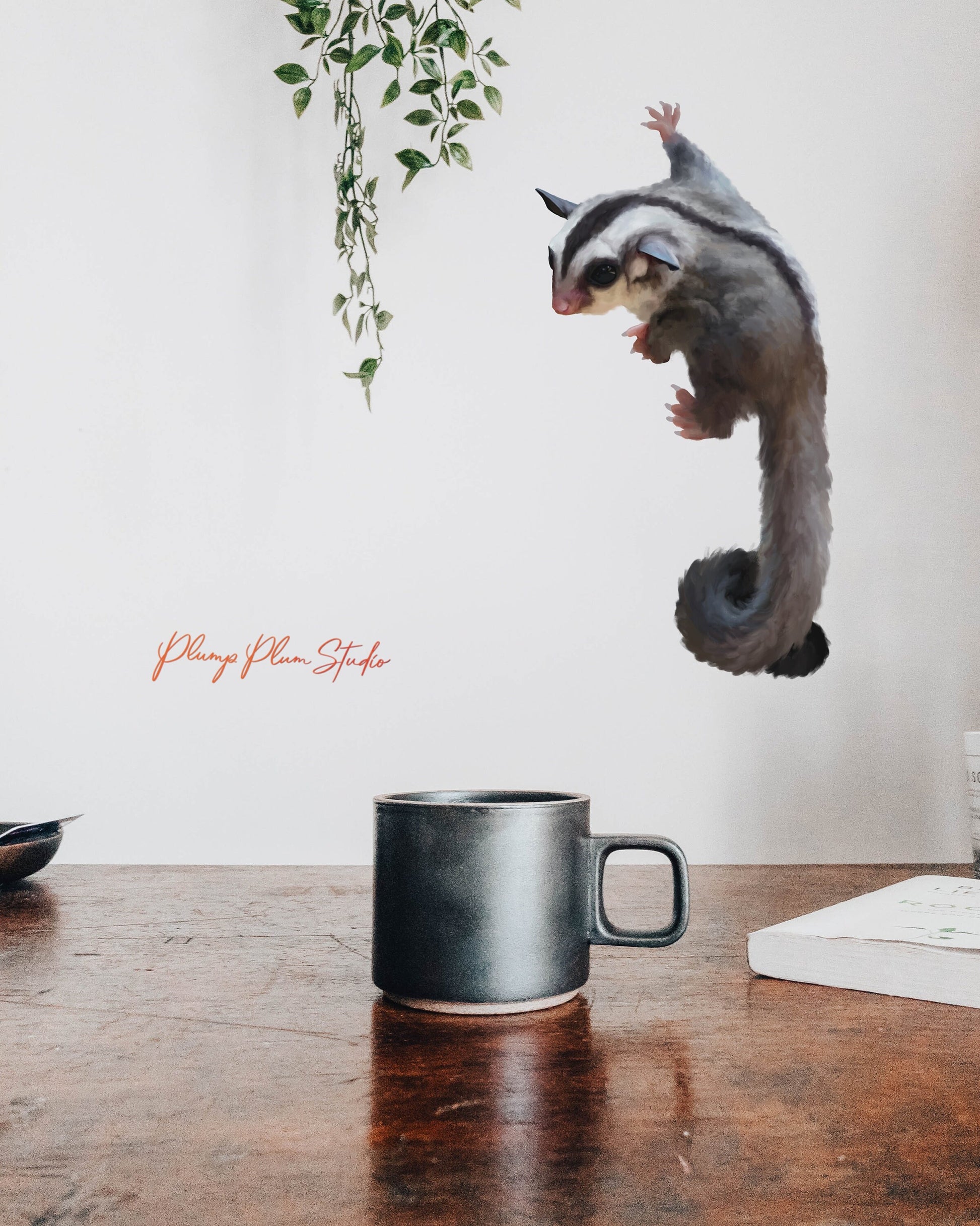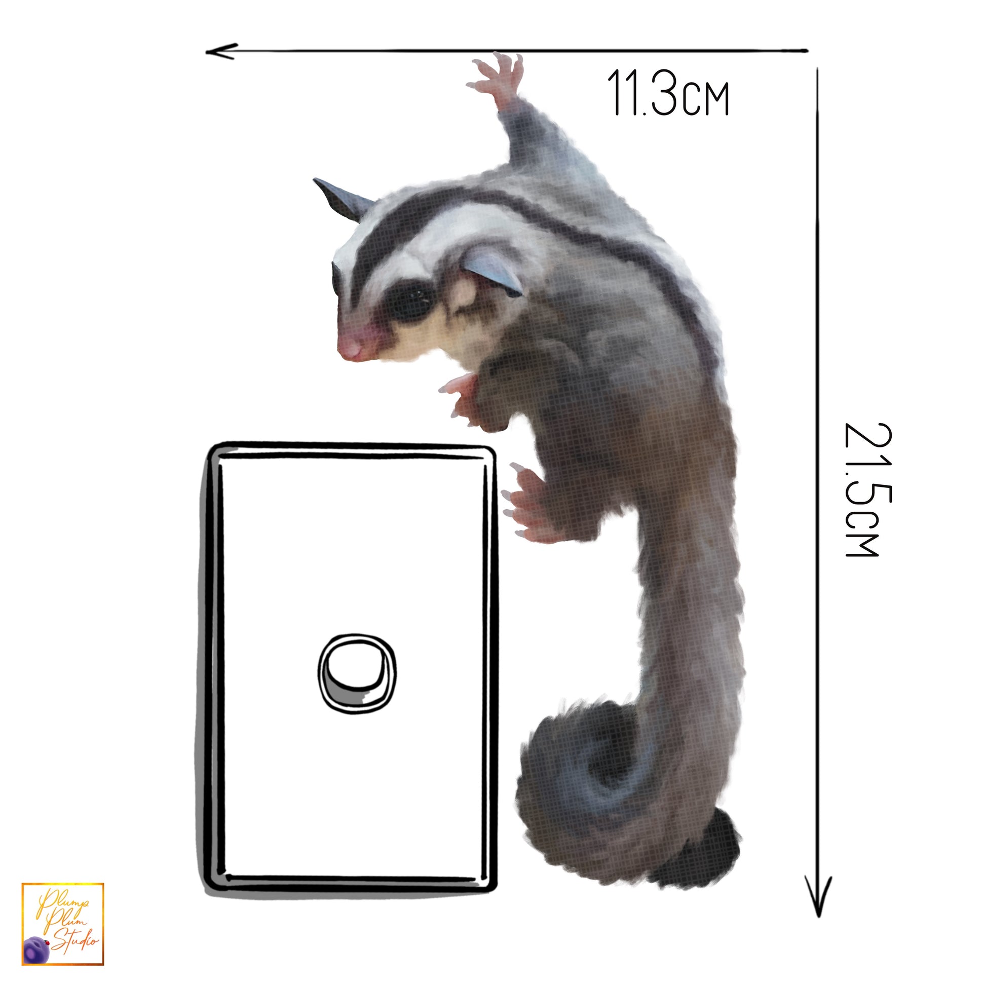 Ridiculously adorable sugar glider, hanging on your wall, one of Australia’s most cute creatures. You can stick him on your car, or he’ll look fantastic hanging on your wall, anywhere in the house, be it the nursery, lounge room, or hallway.