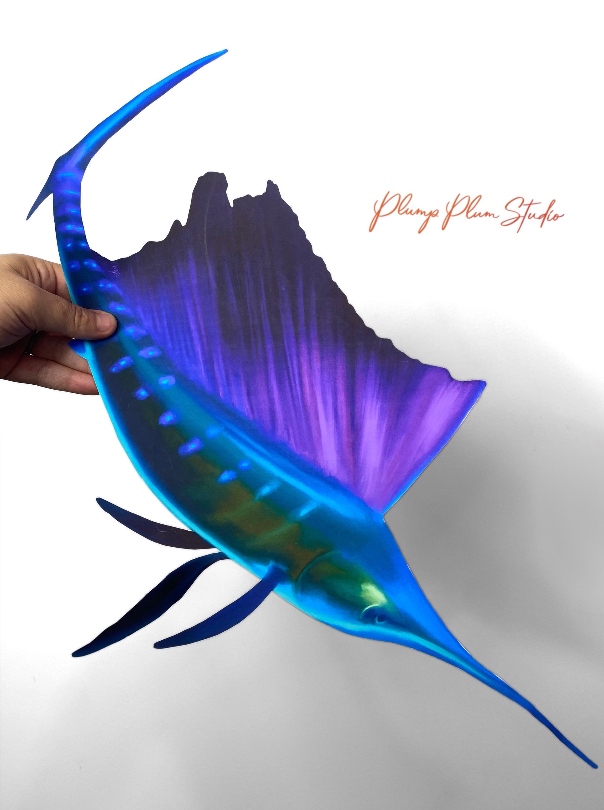 Vibrant coloured Sailfish decal, Marine Sporting fish sticker, large Sailfish vinyl sticker, indoor/outdoor peel/stick luxury vinyl decal