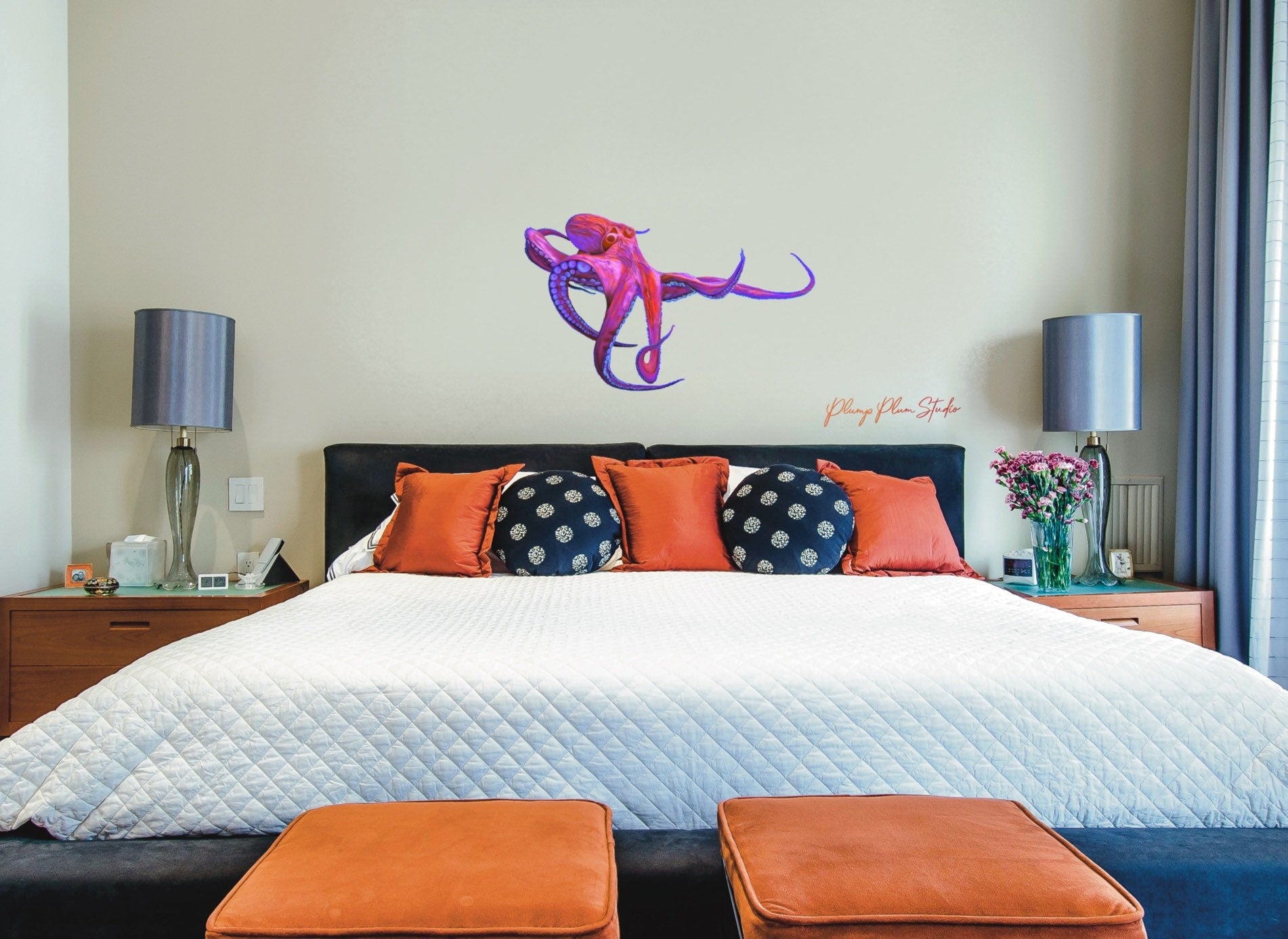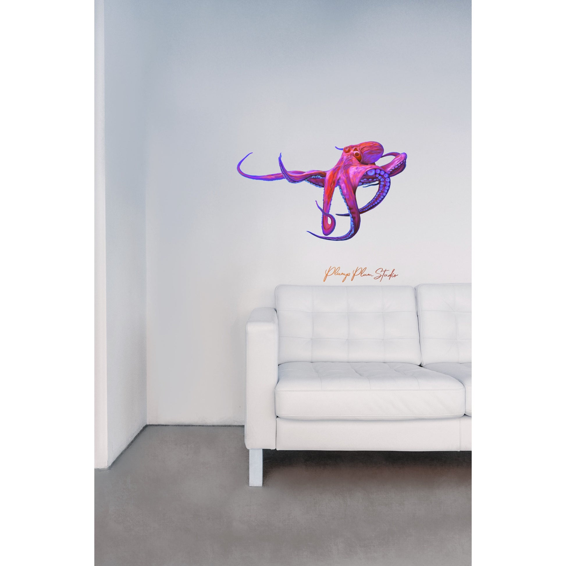 Colourful Octopus decal, Reusable Realistic Octopus sticker, Pink/Purple/Blue Octopus, repositionable fabric texture vinyl, indoor/outdoor