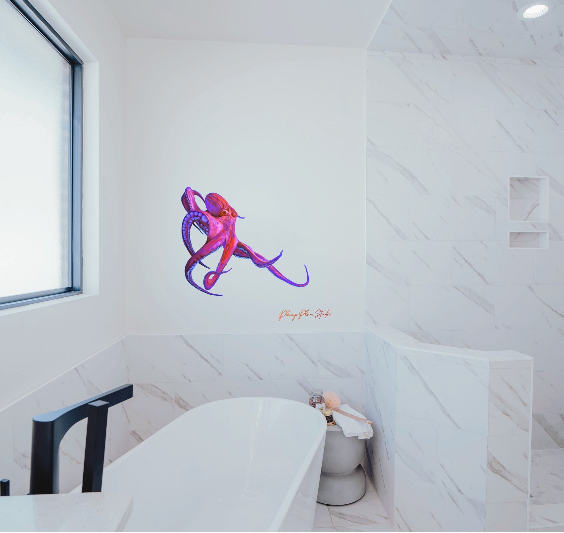 Large illustrated Common Octopus decal. This highly intelligent, and elegant octopus is quite the beauty. With he’s vibrant colours and flowing limbs it will be a very unique piece of art in your home. Suitable for any room in the house. Great to dance over your newborn, or swimming along your lounge room wall. He can go outside, stick him on your car or wheelie bin - your imagination is your limit!